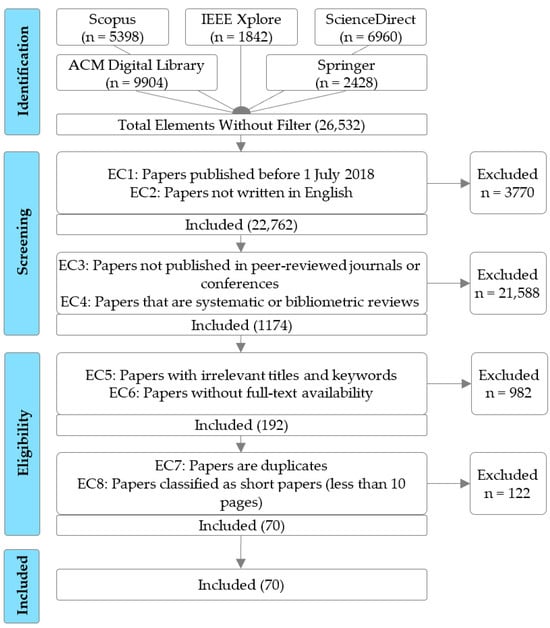 - Kitchenham, B.; Brereton, O.P.; Budgen, D.; Turner, M.; Bailey, J.; Linkman, S. Systematic Literature Reviews in Software Engineering-A Systematic Literature Review. Inf. Softw. Technol. 2009, 51, 7–15. [Google Scholar] [CrossRef]
