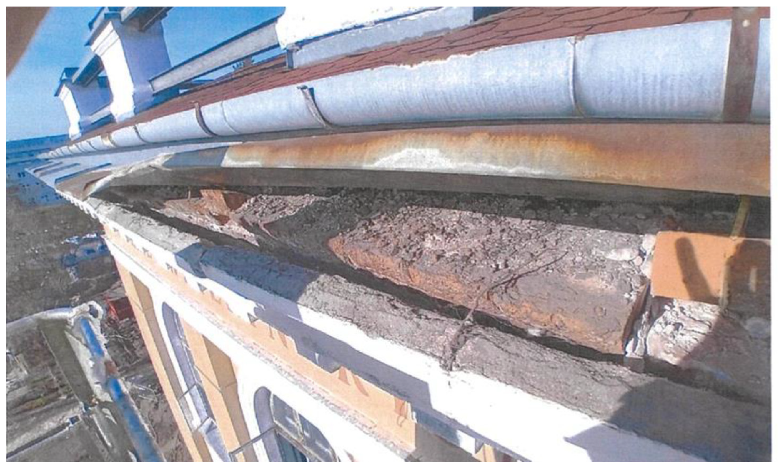 Figure 2), resulting in the spontaneous detachment of fragments of the cornice in some places. And therefore, permission was sought from the conservator of monuments to demolish and reconstruct the cornice.