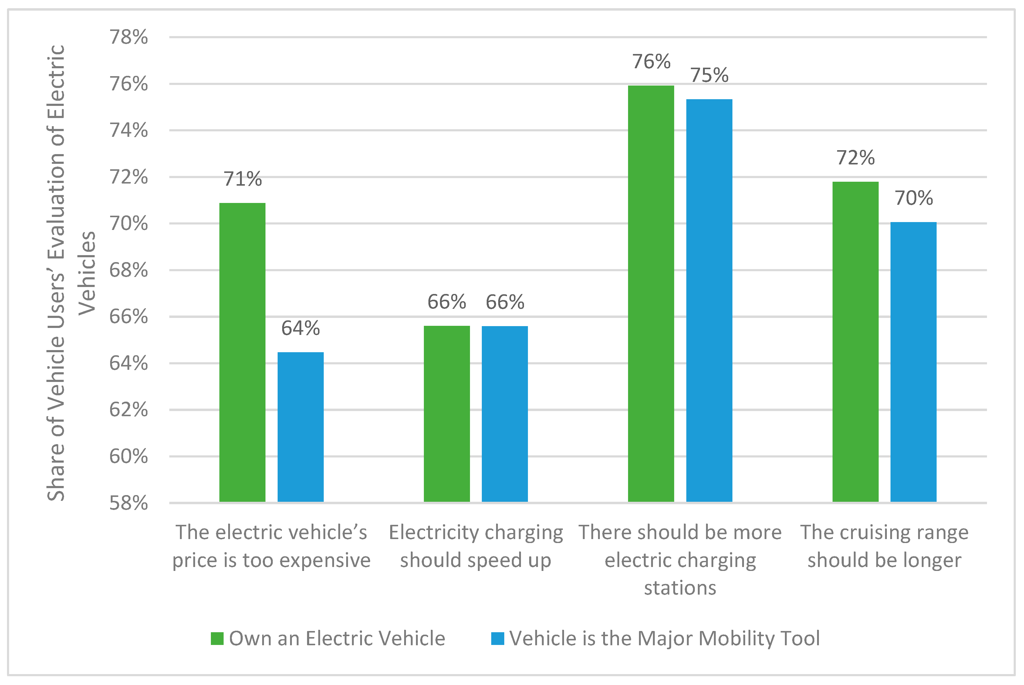 | Slow charging speed | “the slow charging speed should be improved regarding the current usage of electric vehicles and potential future improvements.” (agree = 3, neither agree nor disagree = 2, disagree = 1) |