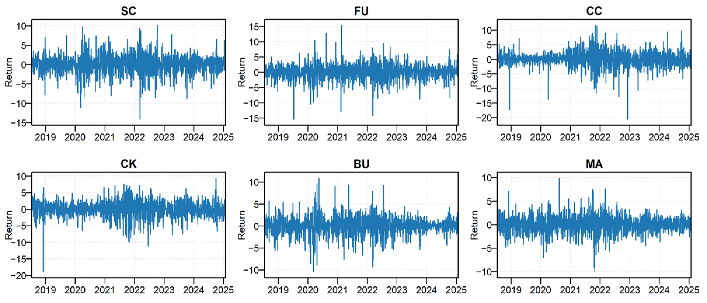 2.2. Regression Model for the Impact of Weather Change on Spillover Effects of Energy Futures