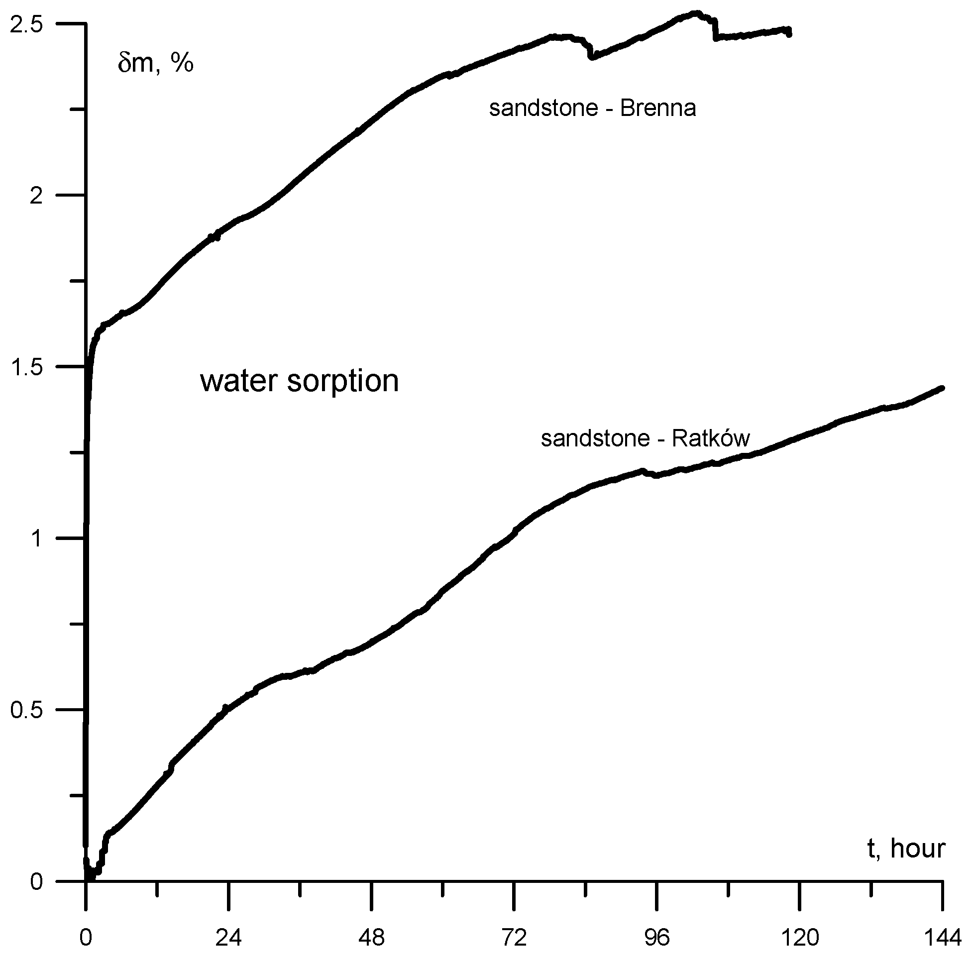 Figure 6. Long-term water saturation of sandstones Brenna and Radków.