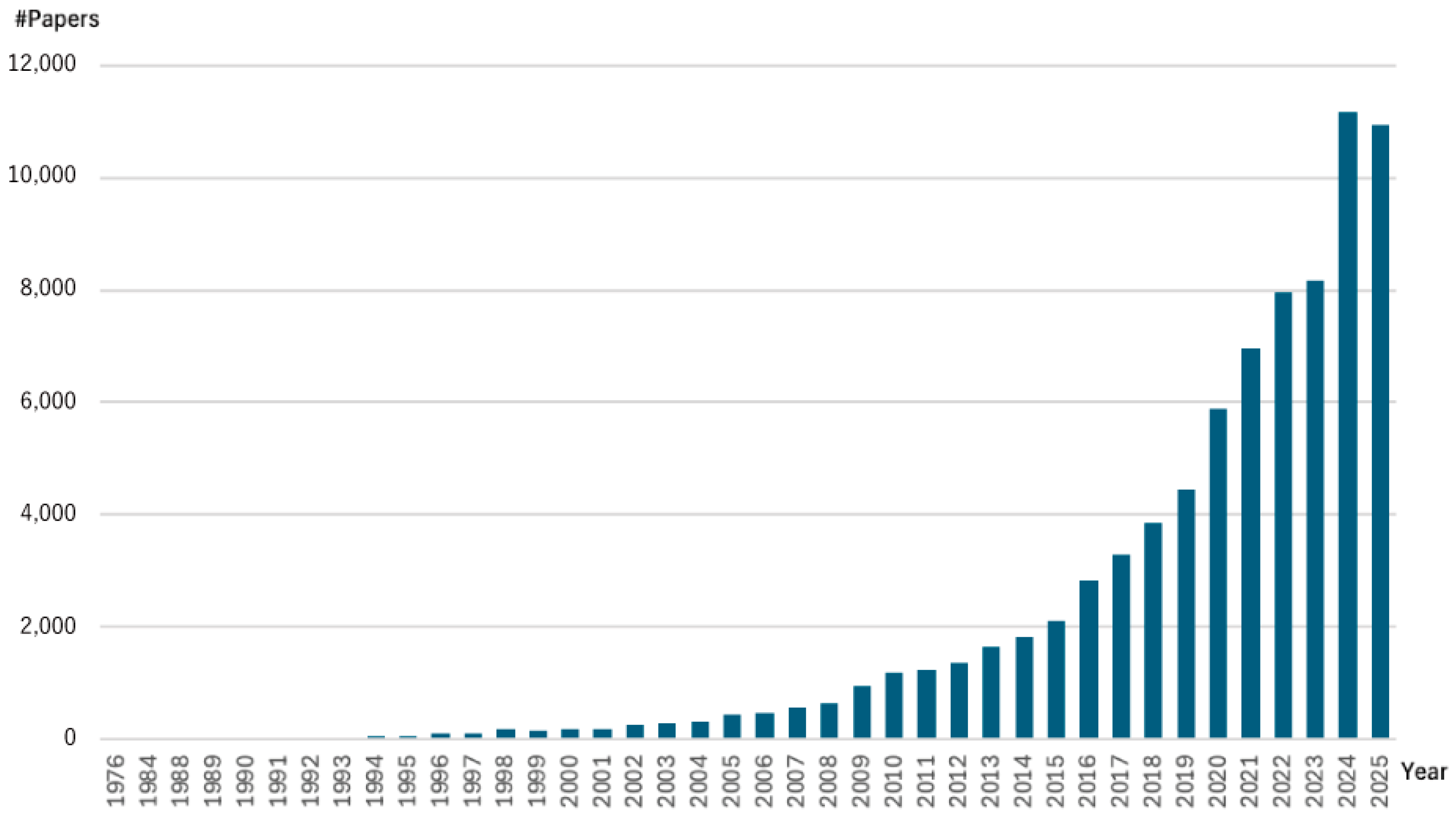 Table 1 provides detailed information for each cluster). The clusters are numbered according to the number of papers they contain. The layout of each paper was derived from text embeddings using OpenAI TextEmbedding3-Small, with the dimensions reduced to two via UMAP. In short, the nodes (papers) are arranged so that neighboring nodes are close together. Therefore, the distance between nodes on the map indicates the closeness of the relationship, but the position itself and the axes have no intrinsic meaning.