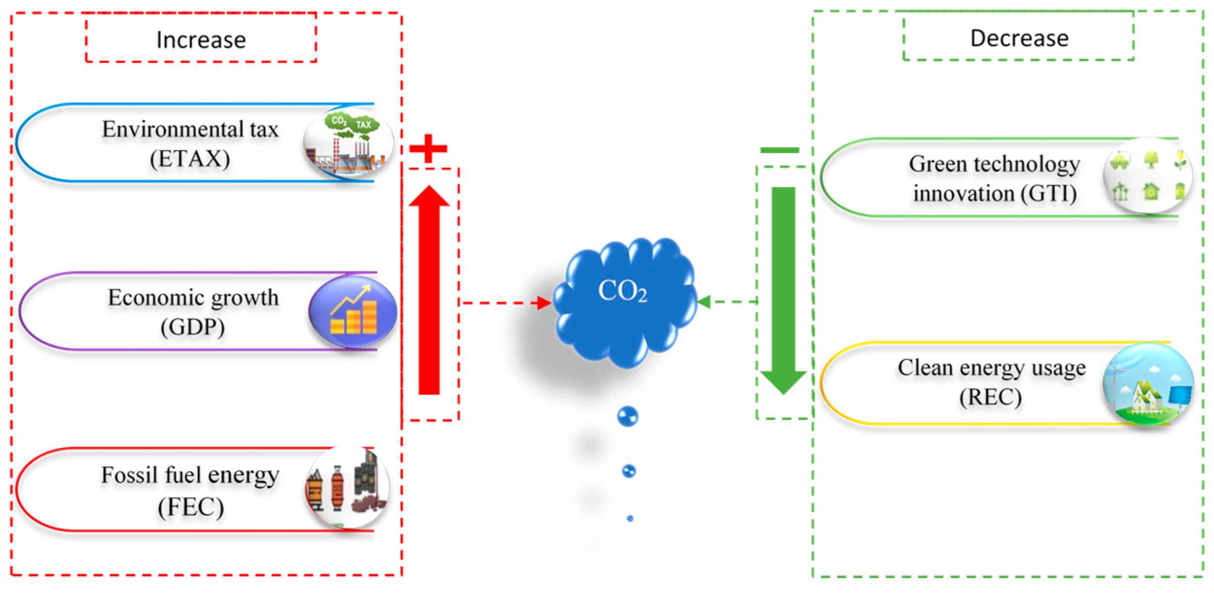 To explore the comprehensive impact of green technology innovation, renewable energy consumption, and environmental tax on carbon dioxide emissions, this study has constructed a cross-disciplinary analytical framework that integrates perspectives of technology, energy, and economy. This framework mainly relies on the following three core theories, which jointly explain the internal mechanisms by which different driving factors affect carbon emissions.