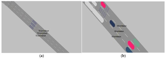 Visualization of the micro-simulation model: (a) Proposed strategy, (b) Modified VSL model.