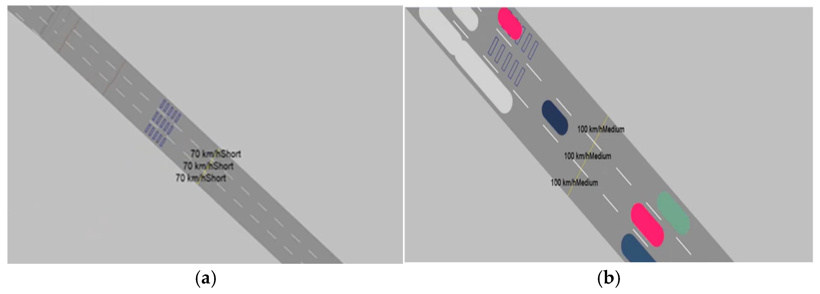 | lane change Parameters | Maximum deceleration, own vehicle (m/s2) | 4.0 | 4.0 | 4.00 | 4.00 | −4.00 | −4.00 |