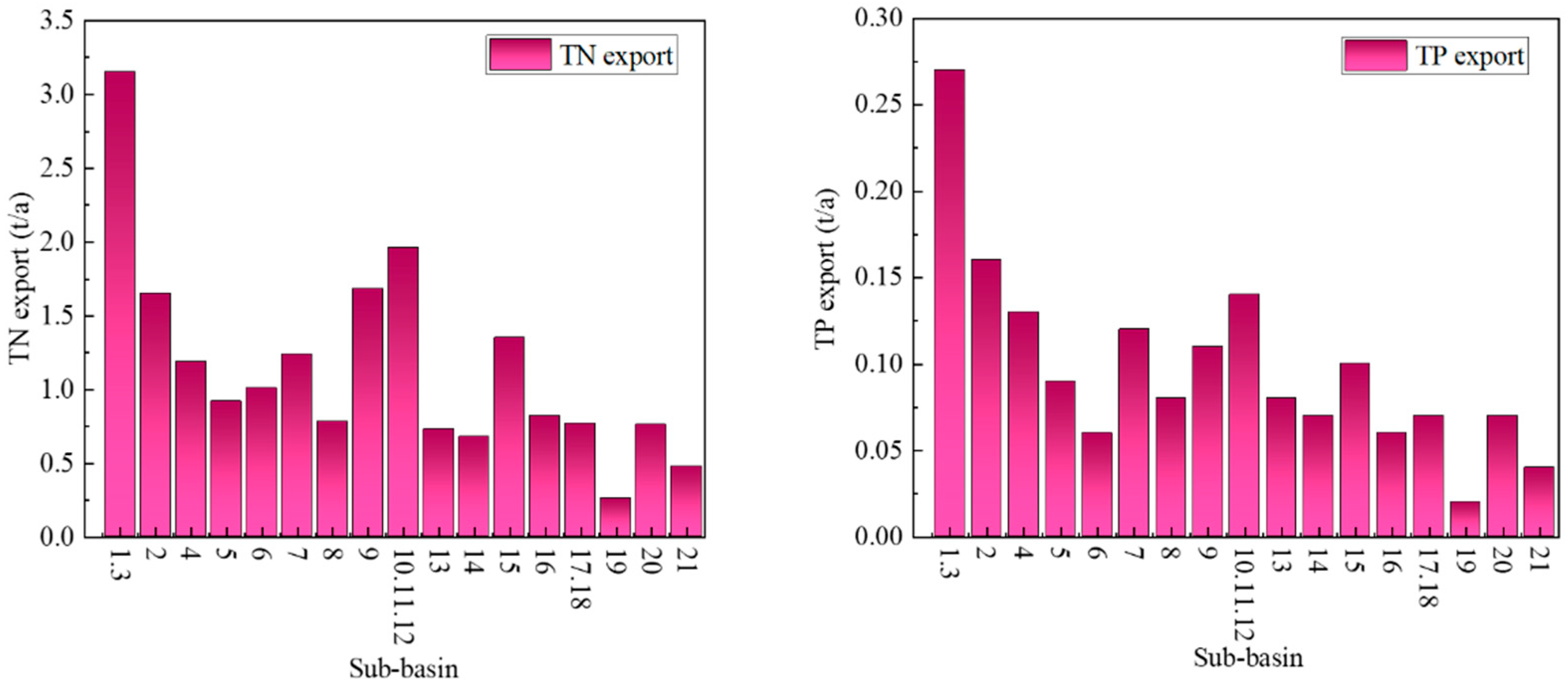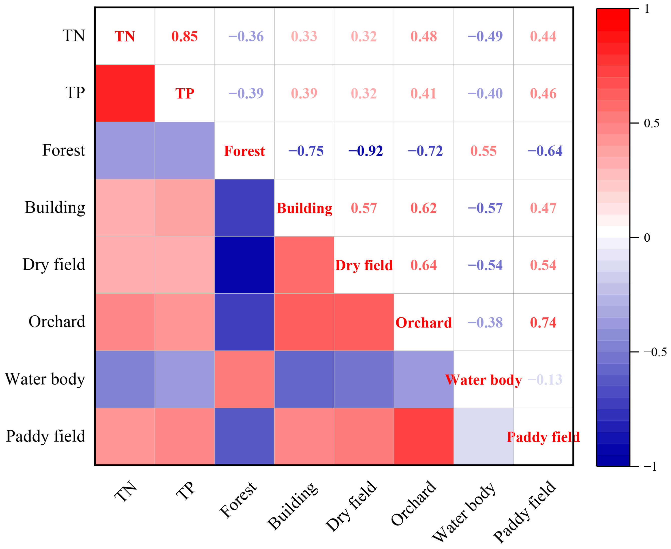 3.3. The Relationship Between the TN and TP Exports and Landscape Patterns