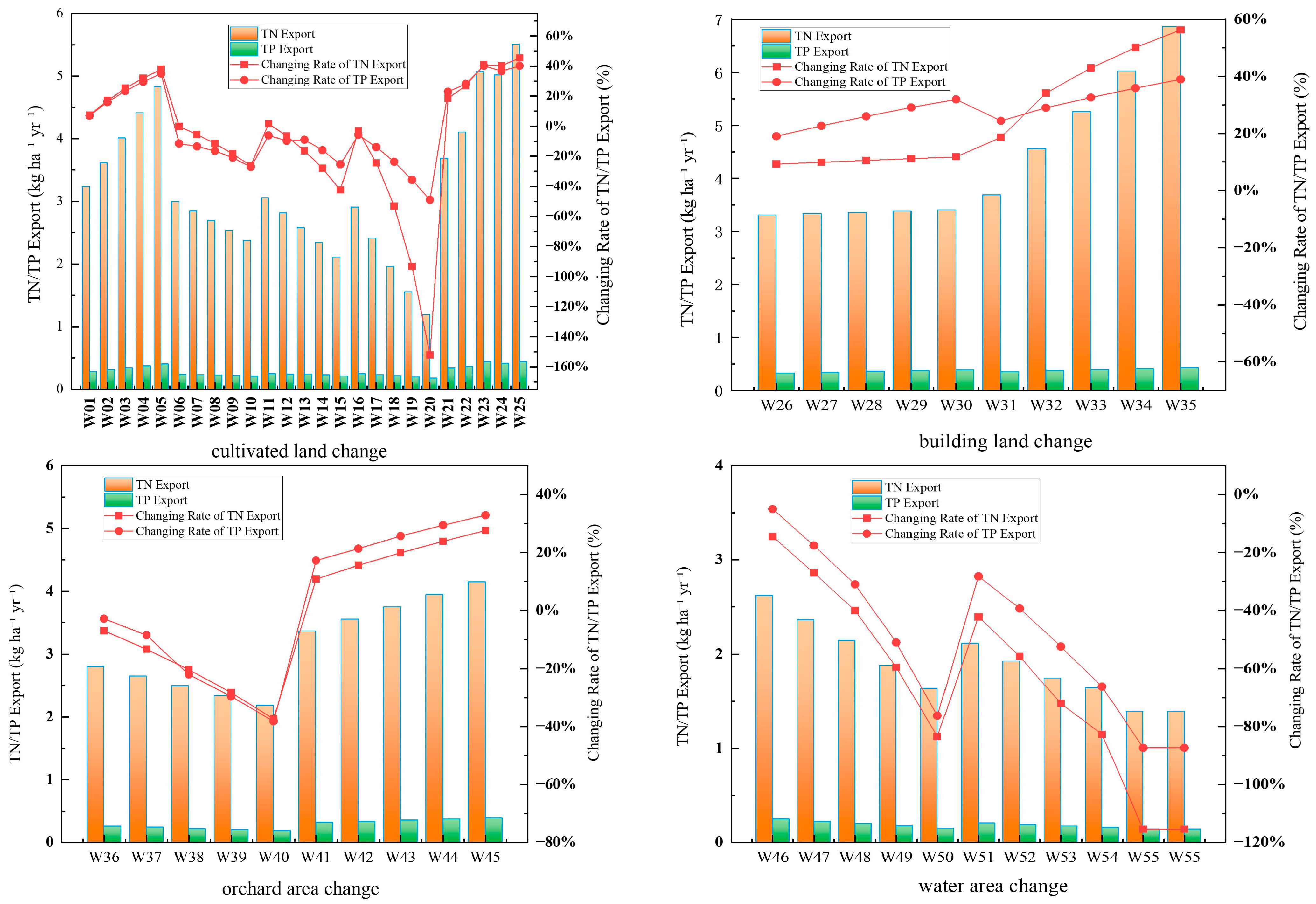 3.4. The Impacts of Land Use Conversions on TN and TP Exports