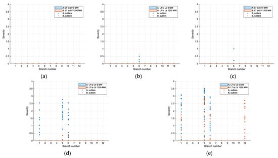 As the severity function value varies depending on the contingency, two values for each branch are selected: one which represents the higher performance index [33] and the other one which represents the highest overloading of this branch, even if the corresponding contingency creates a low performance index.