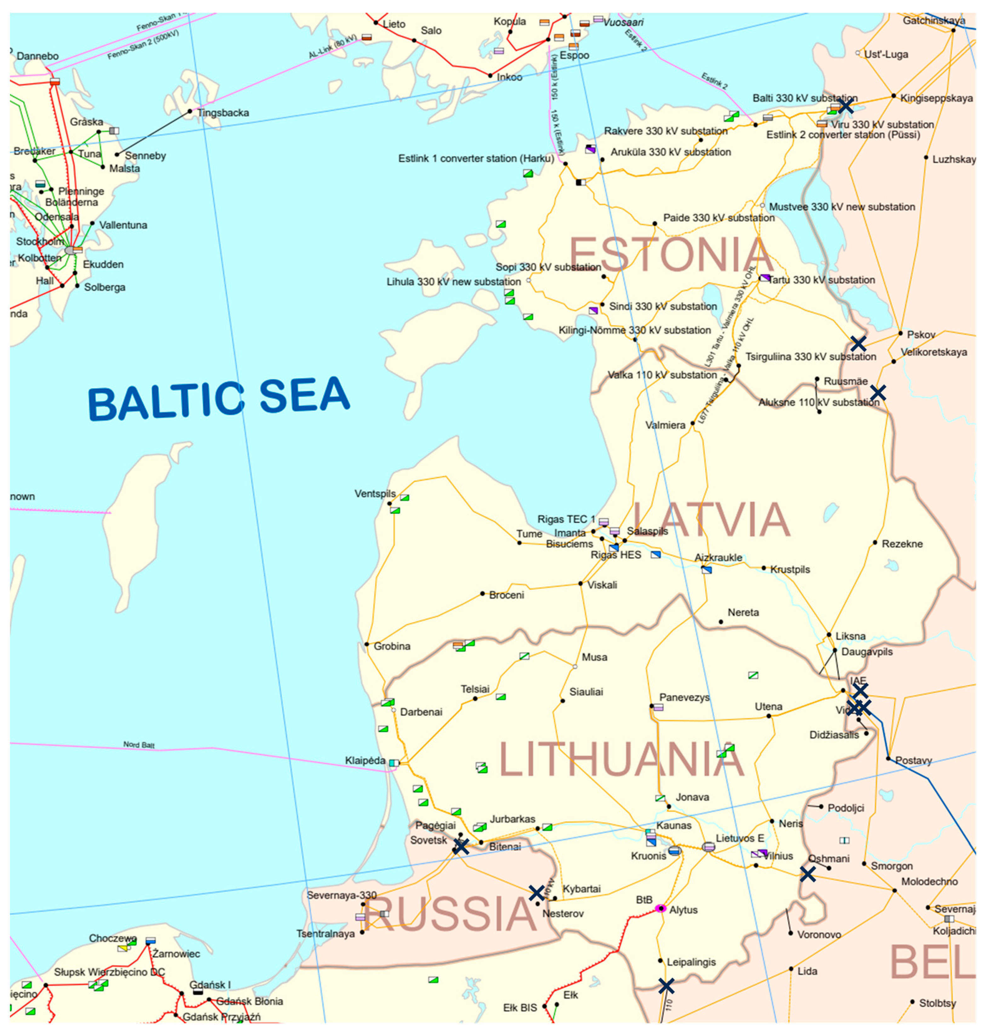 As of 2025, the Lithuanian, Latvian, and Estonian power systems are physically disconnected from the Belarusian and Russian power systems, including the Kaliningrad region, and are synchronously interconnected with Poland. Non-synchronous interconnections via high-voltage direct-current (HVDC) cables with the Scandinavian countries remain in operation: Lithuania is linked to the Swedish power system through the NordBalt HVDC interconnector, while Estonia is linked to the Finnish power system through the Estlink 1 and Estlink 2 HVDC interconnectors (Figure 3).