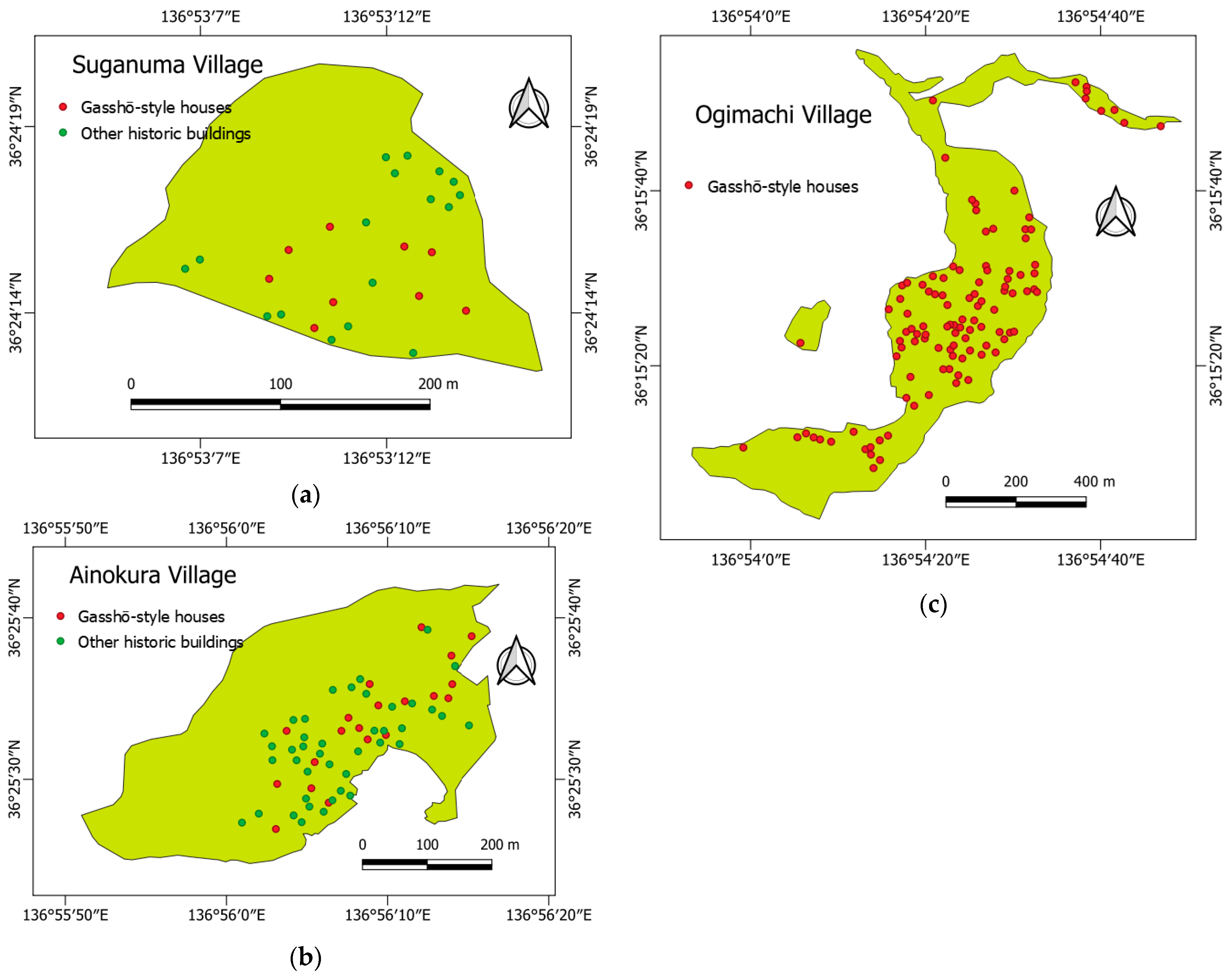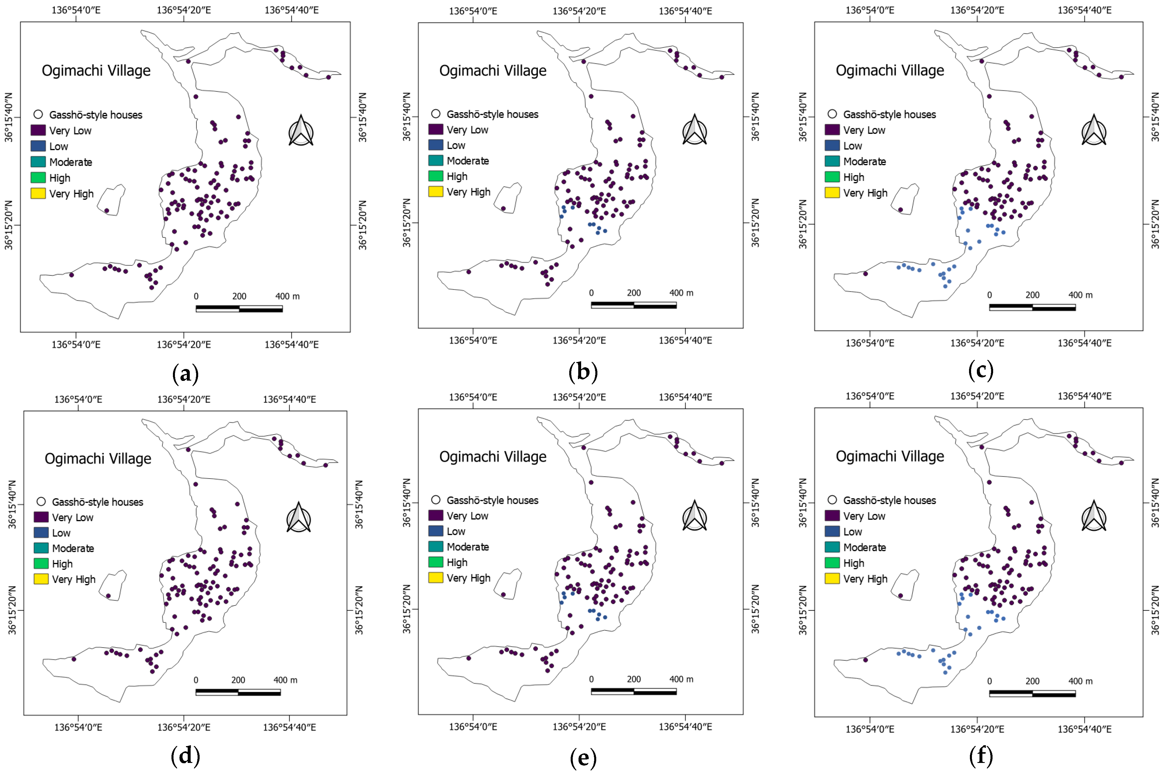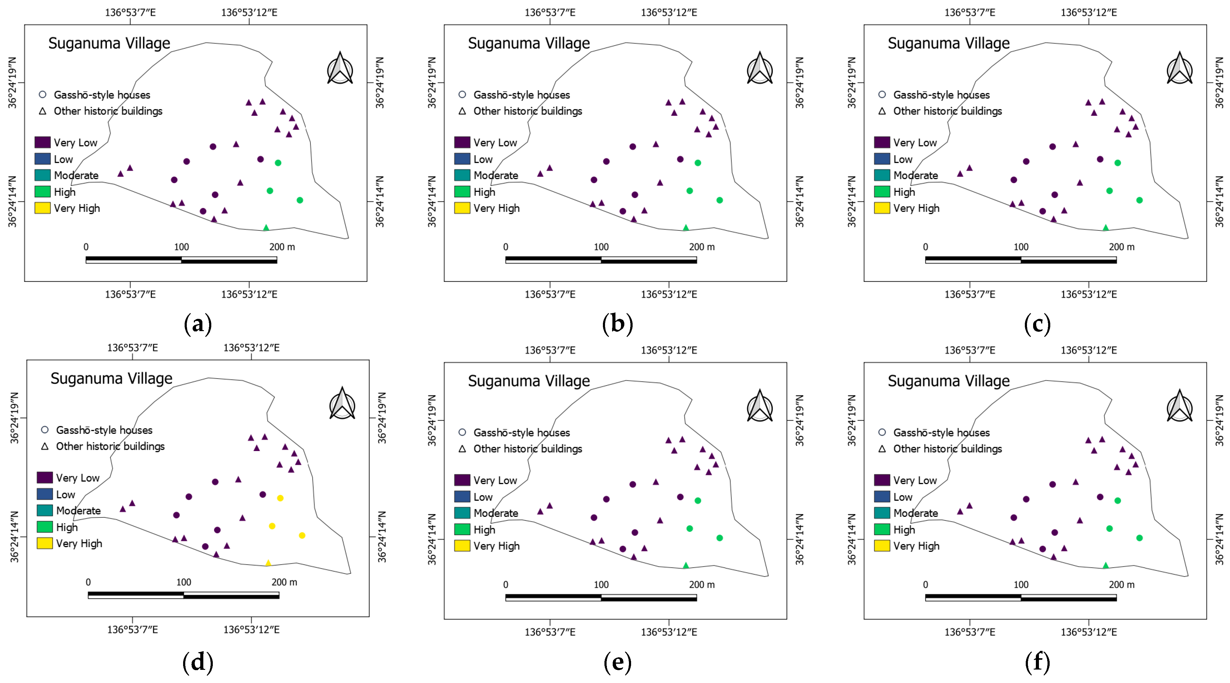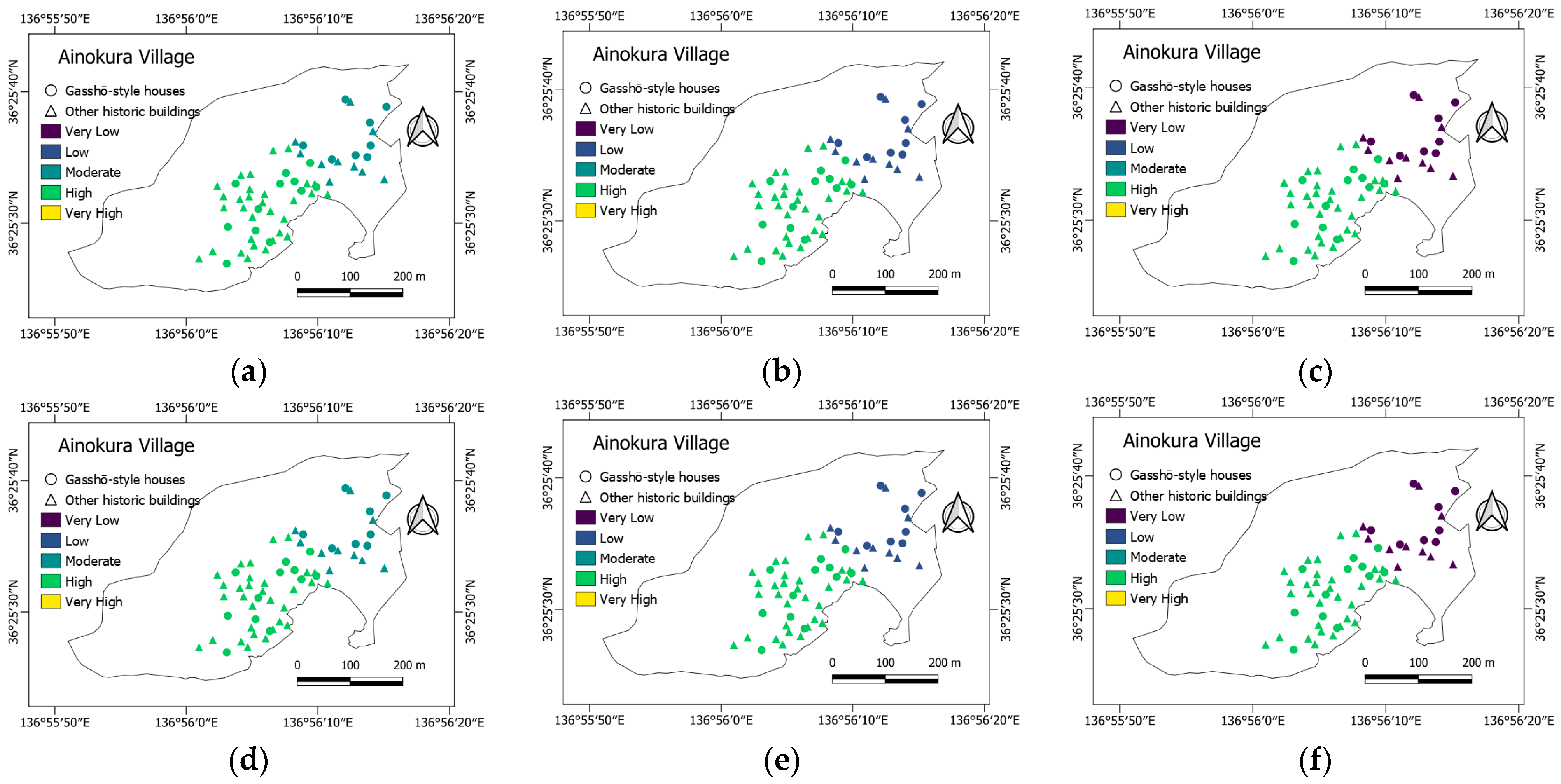 3.5. Distribution of Gasshō-Style and Other Historic Buildings Across Susceptibility Classes