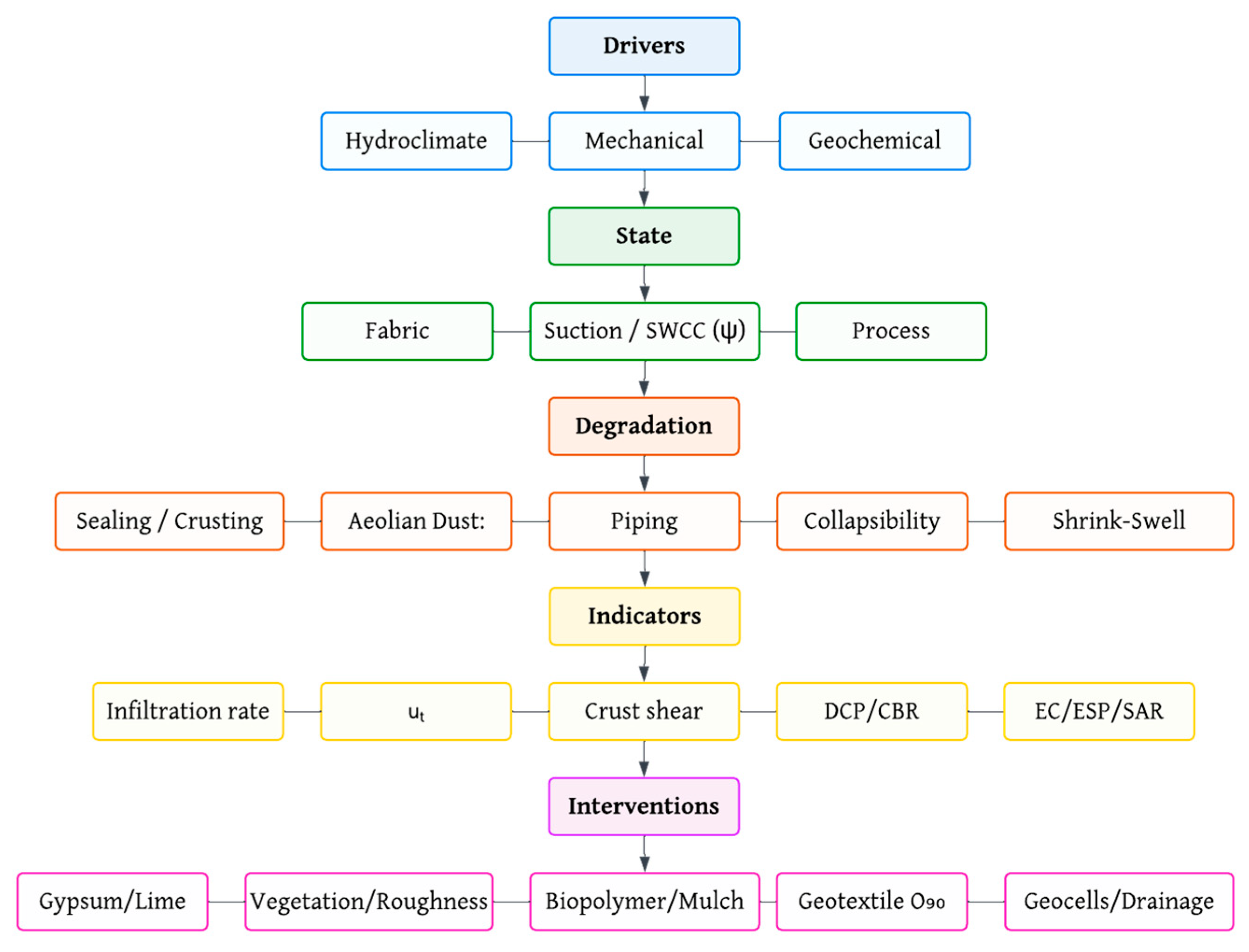 Geotechnical Controls on Land Degradation in Drylands: Indicators and Mitigation for Infrastructure and Renewable Energy