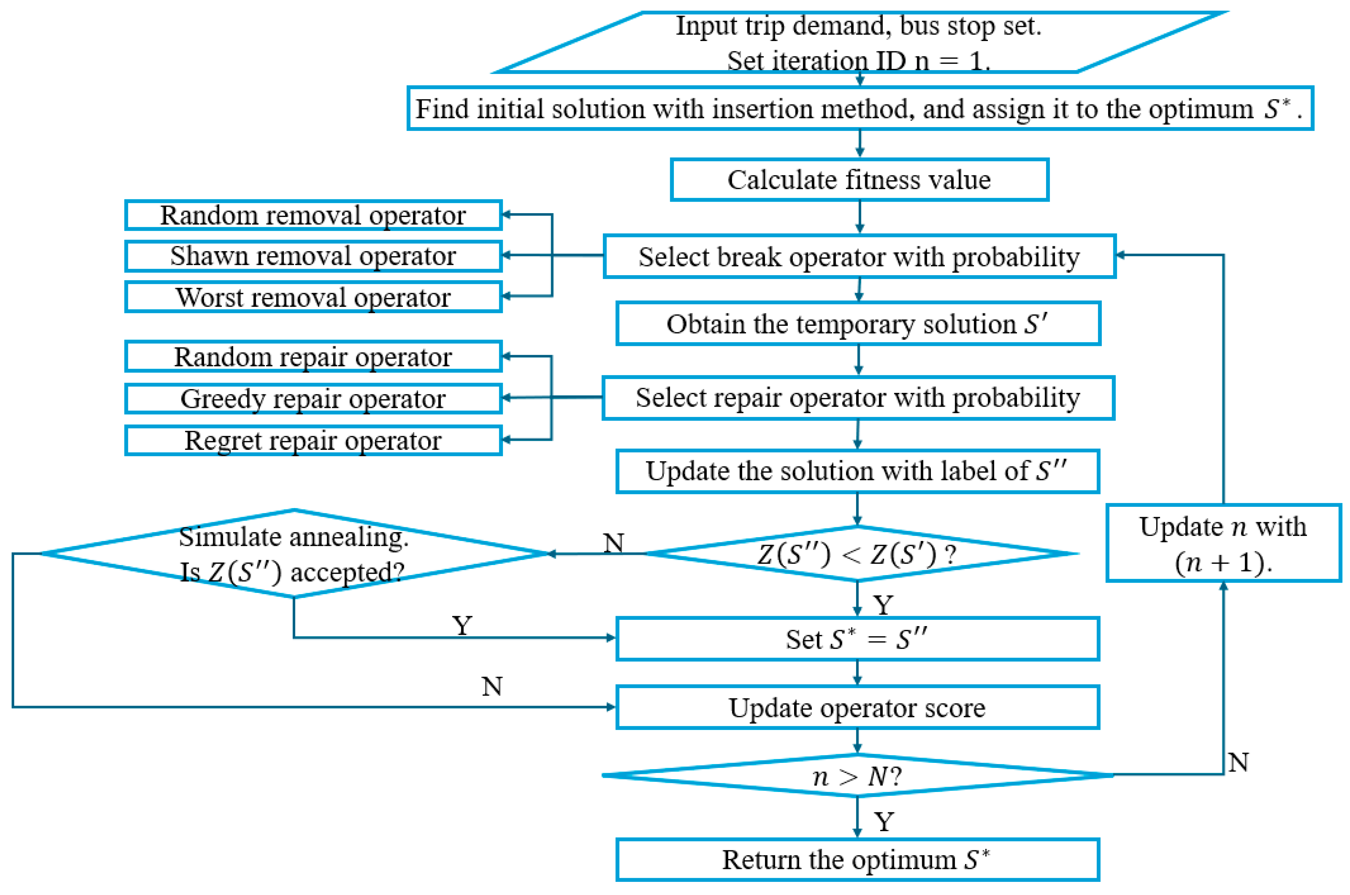 - Galarza Montenegro, B.D.; Sörensen, K.; Vansteenwegen, P. A large neighborhood search algorithm to optimize a demand-responsive feeder service. Transp. Res. Part C Emerg. Technol. 2021, 127, 103102. [Google Scholar] [CrossRef]