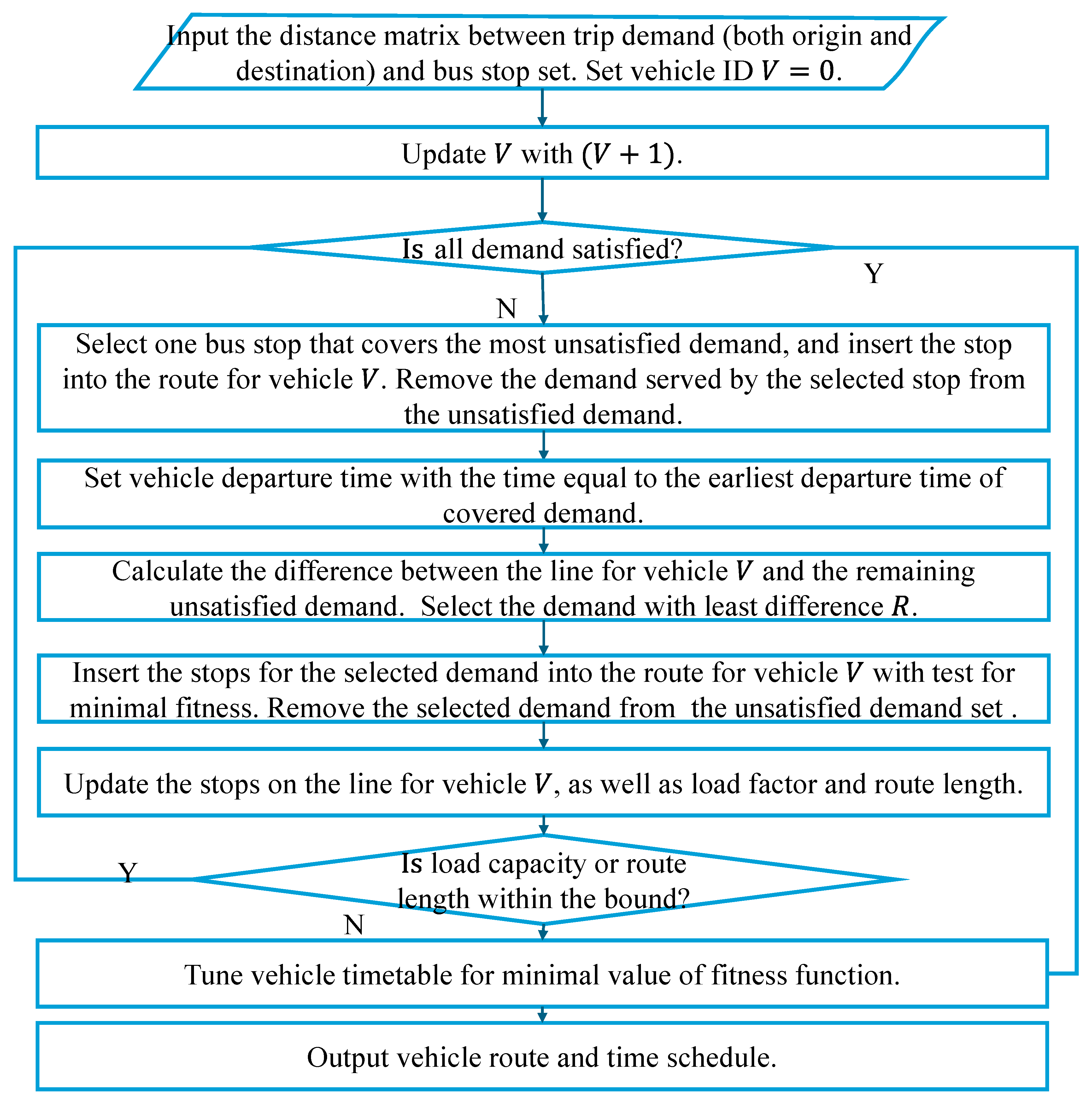 - Sun, Z.; Zhou, K.; Yang, X.; Peng, X.; Song, R. Optimization method of customized shuttle bus lines under random condition. Algorithms 2021, 14, 52. [Google Scholar] [CrossRef]