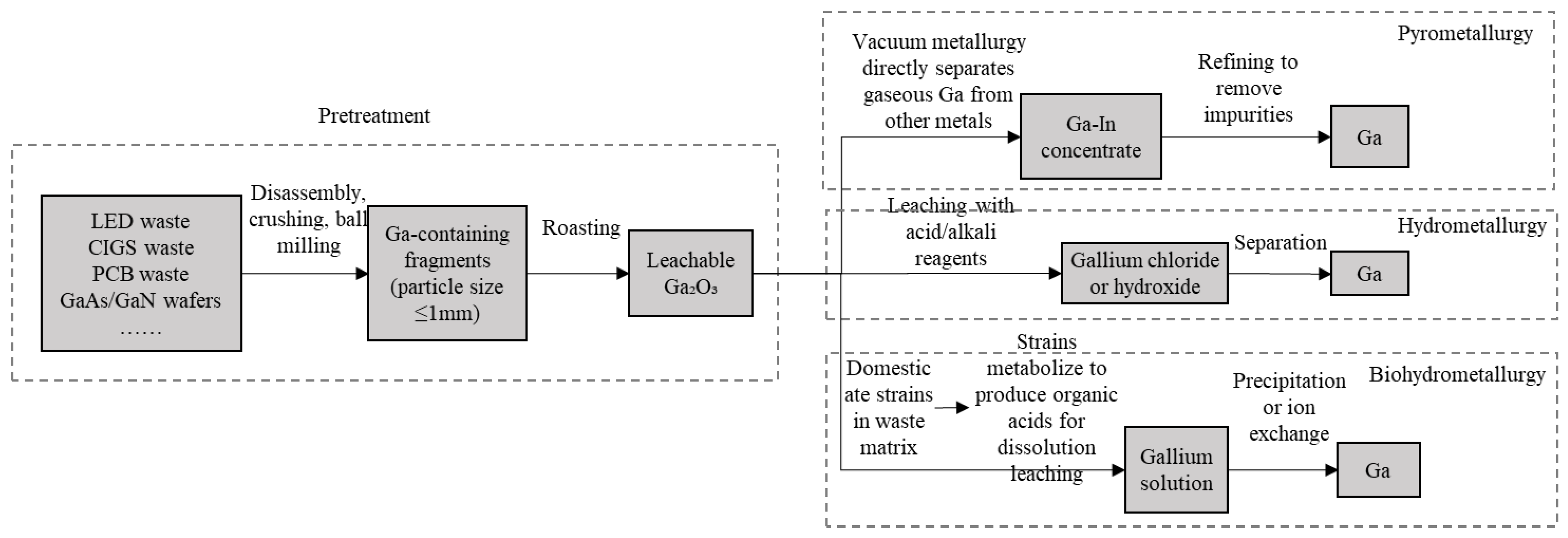 33], and hydrometallurgical processing has been identified as the most suitable method to recover gallium from LEDs due to its high efficiency in recovering metals from low-grade secondary raw material [