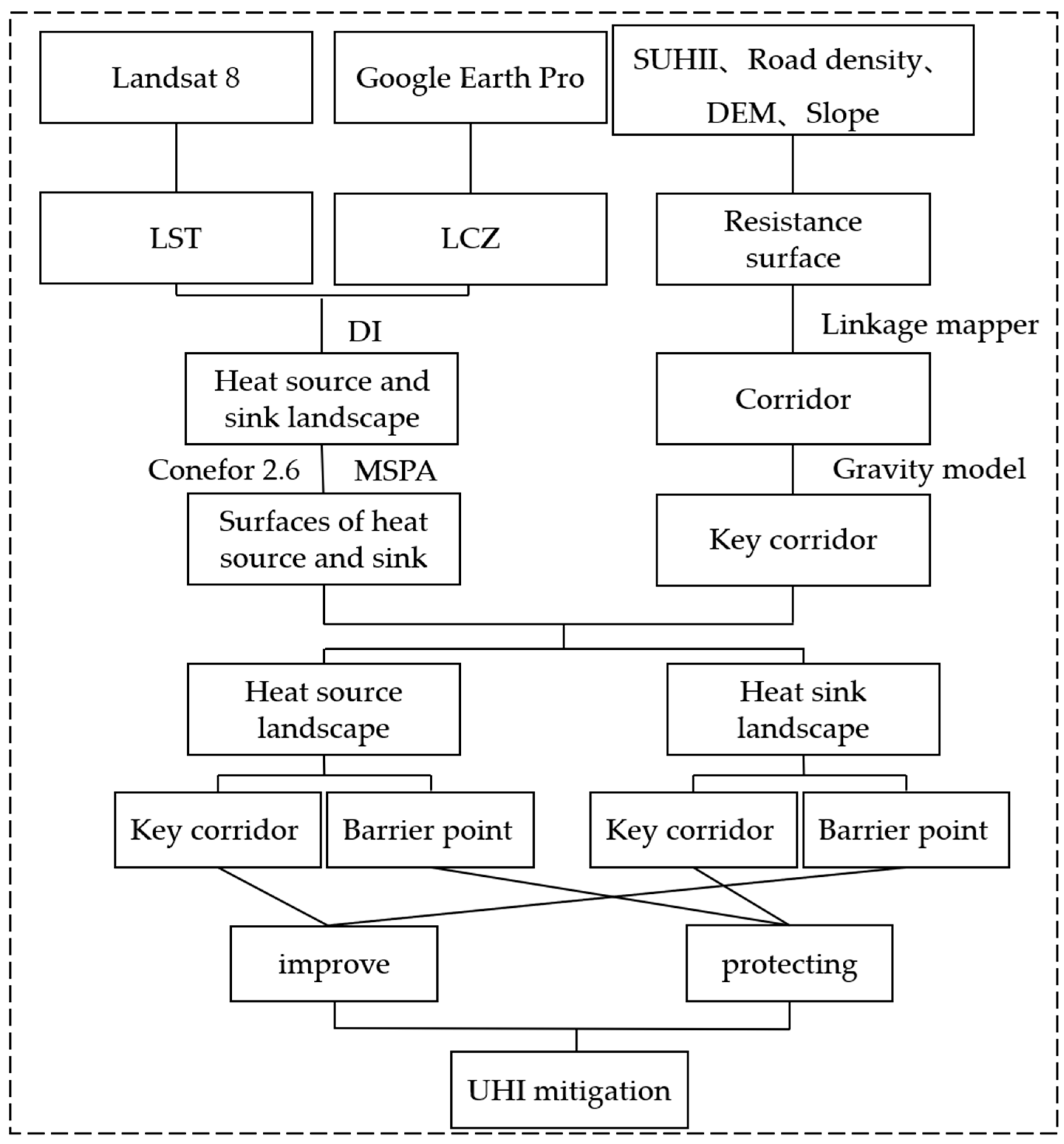 - Hu, C.; Li, H. Reverse Thinking: The Logical System Research Method of Urban Thermal Safety Pattern Construction, Evaluation, and Optimization. Remote Sens. 2022, 14, 6036. [Google Scholar] [CrossRef]