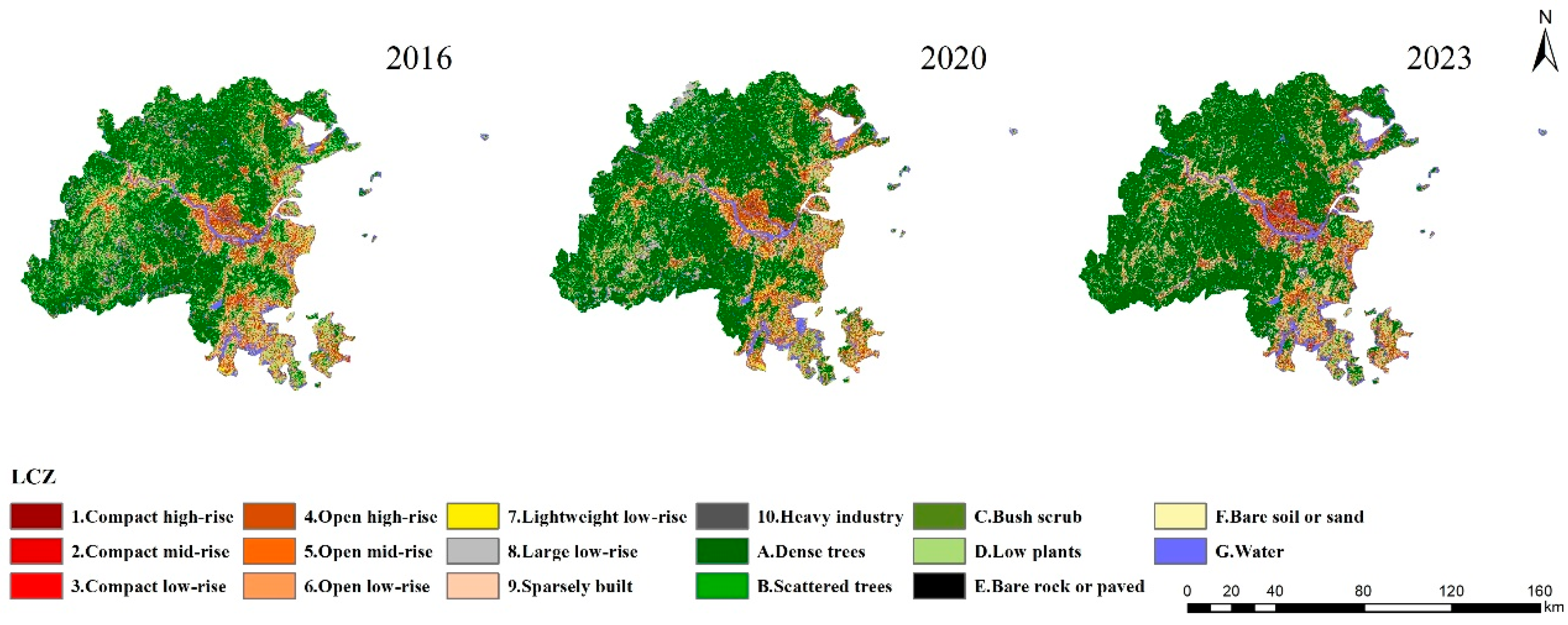 - Huang, F.; Jiang, S.; Zhan, W.; Bechtel, B.; Liu, Z.; Demuzere, M.; Huang, Y.; Xu, Y.; Ma, L.; Xia, W.; et al. Mapping local climate zones for cities: A large review. Remote Sens. Environ. 2023, 292, 113573. [Google Scholar] [CrossRef]