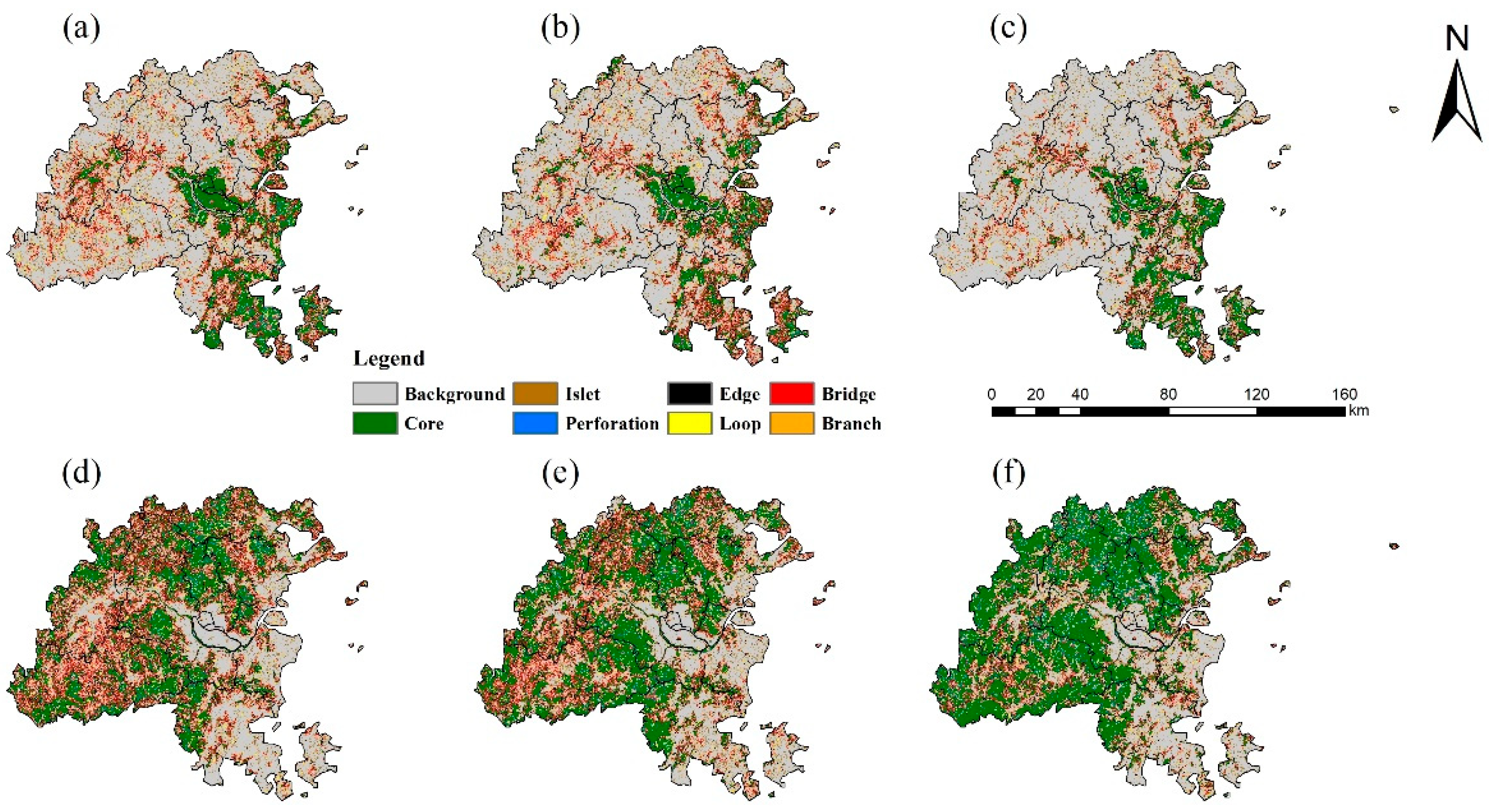 - Wang, Q.; Liu, S.; Liu, Y.; Wang, F.; Liu, H.; Yu, L. Effects of urban agglomeration and expansion on landscape connectivity in the river valley region, Qinghai-Tibet Plateau. Glob. Ecol. Conserv. 2022, 34, e02004. [Google Scholar] [CrossRef]