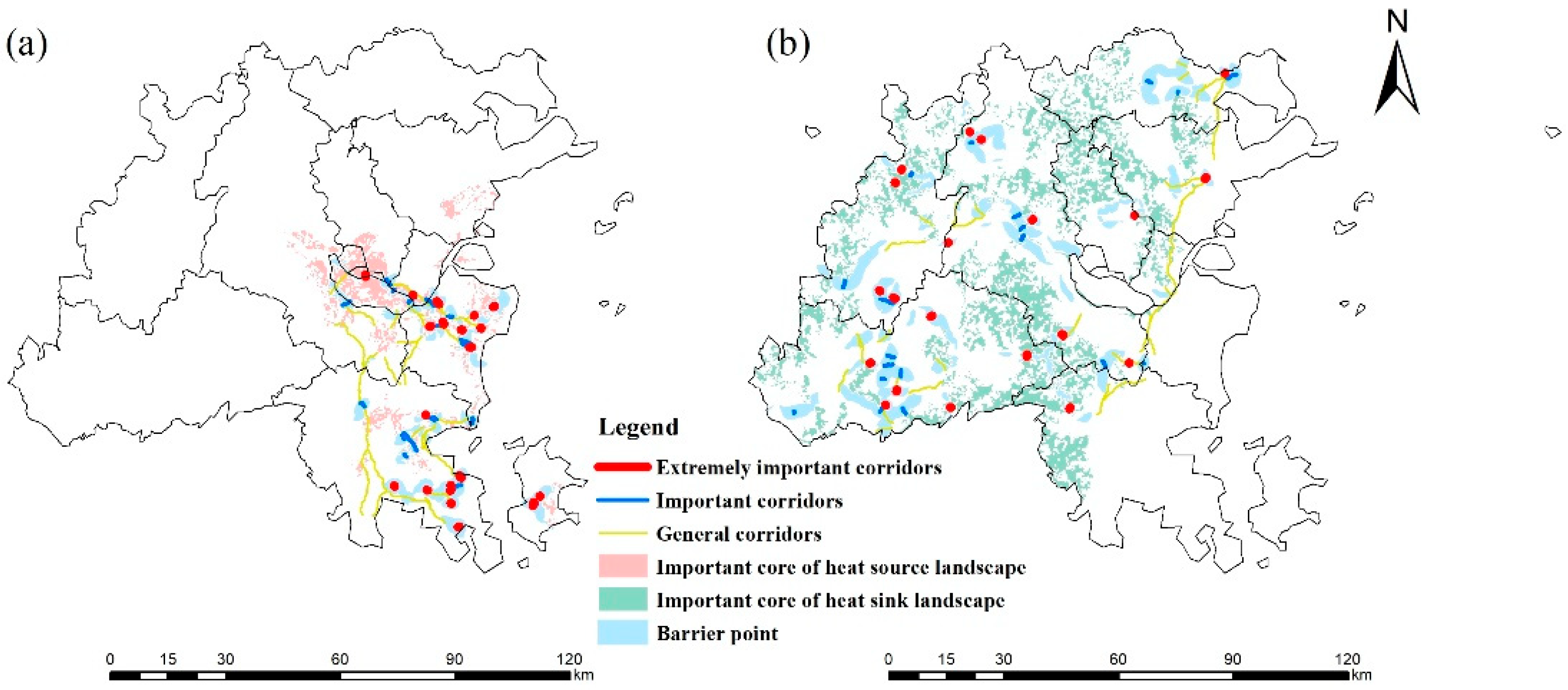 2.3.3. Identifications of Heat Source and Sink Landscapes
