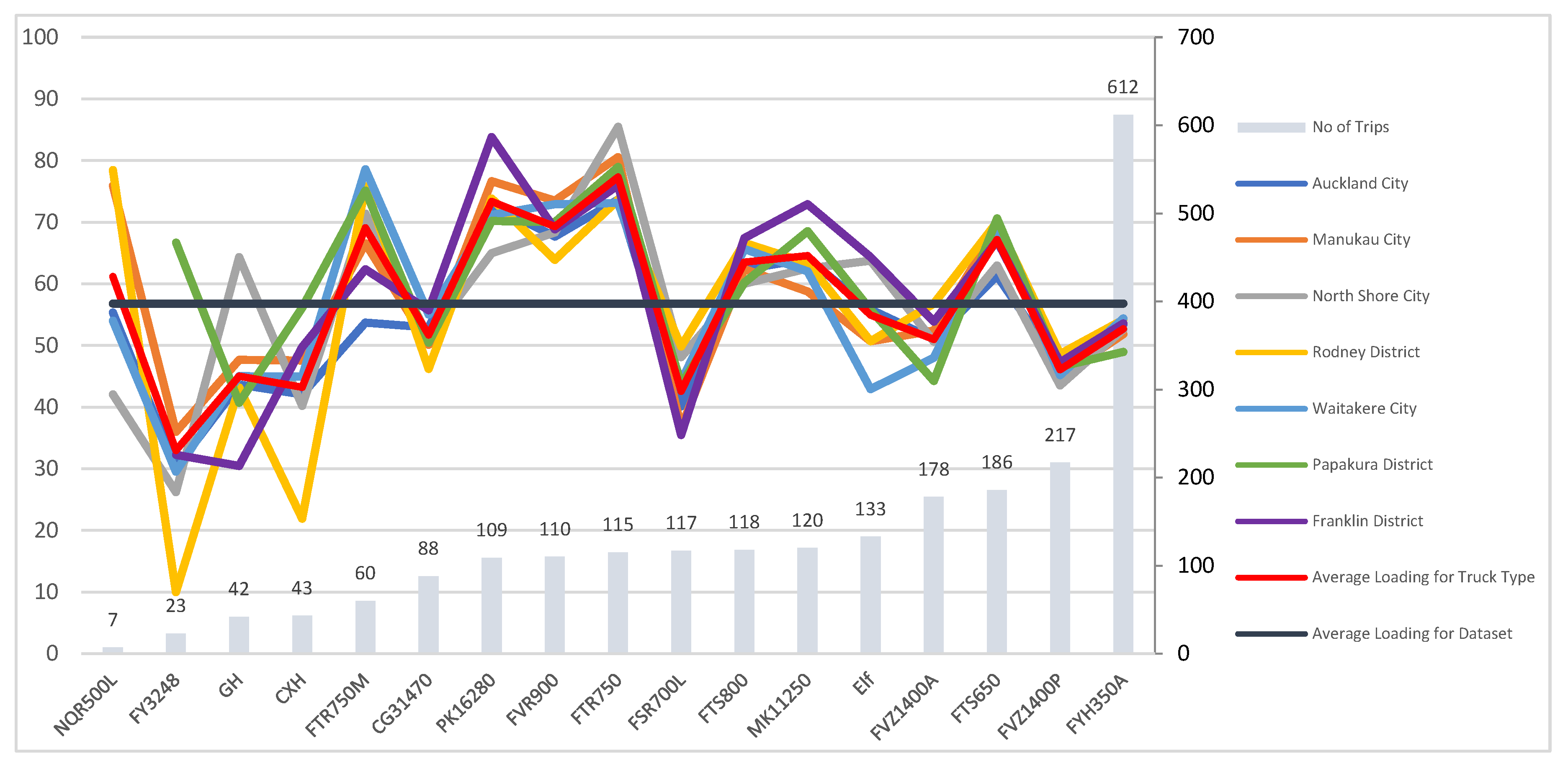 | Drops | Trips | Loading Efficiency (%—Tonnes) | Capacity Utilisation (%—tkm) | ||||