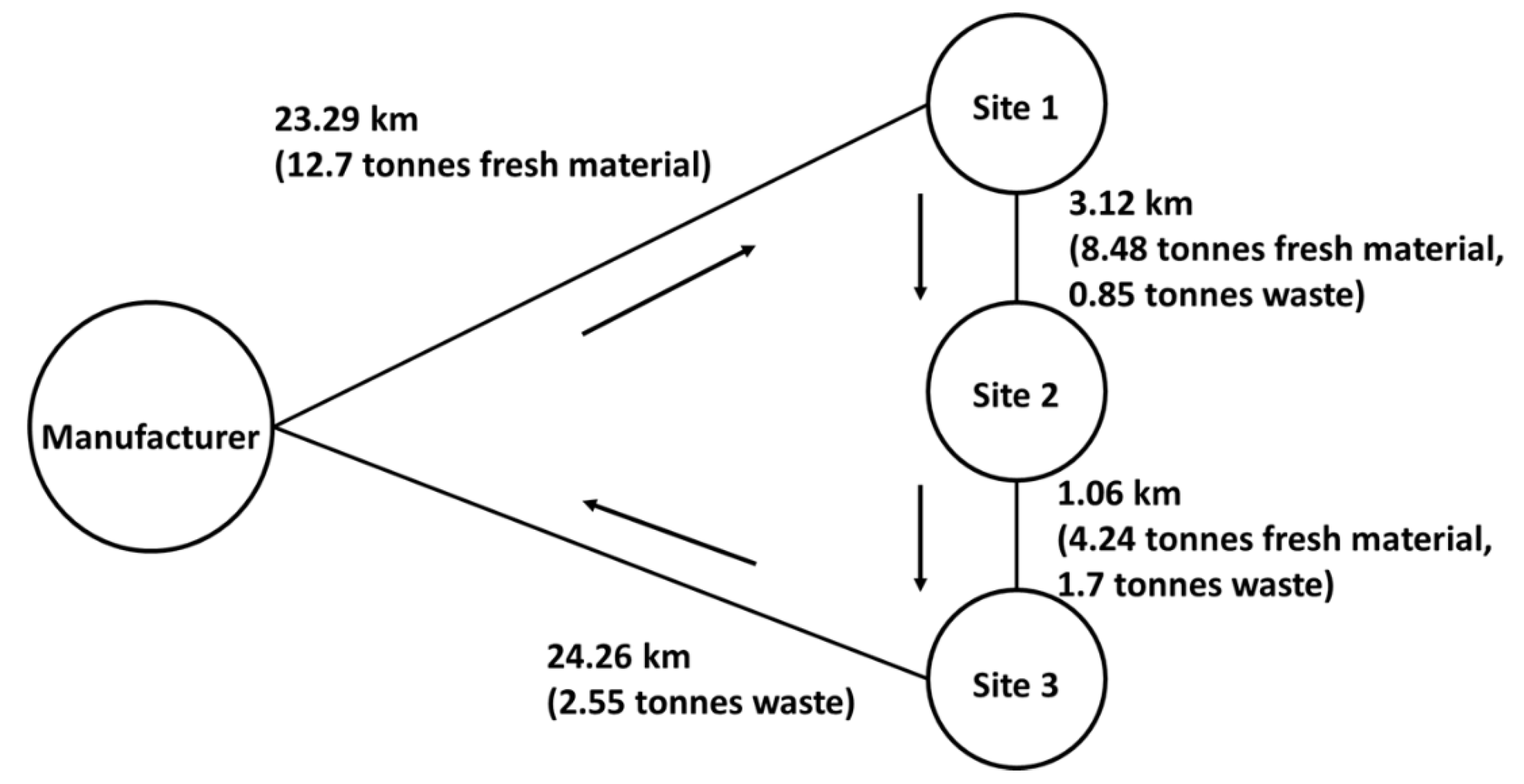 3.2.4. Integrating Reverse Logistics of Waste Removal with Material Delivery