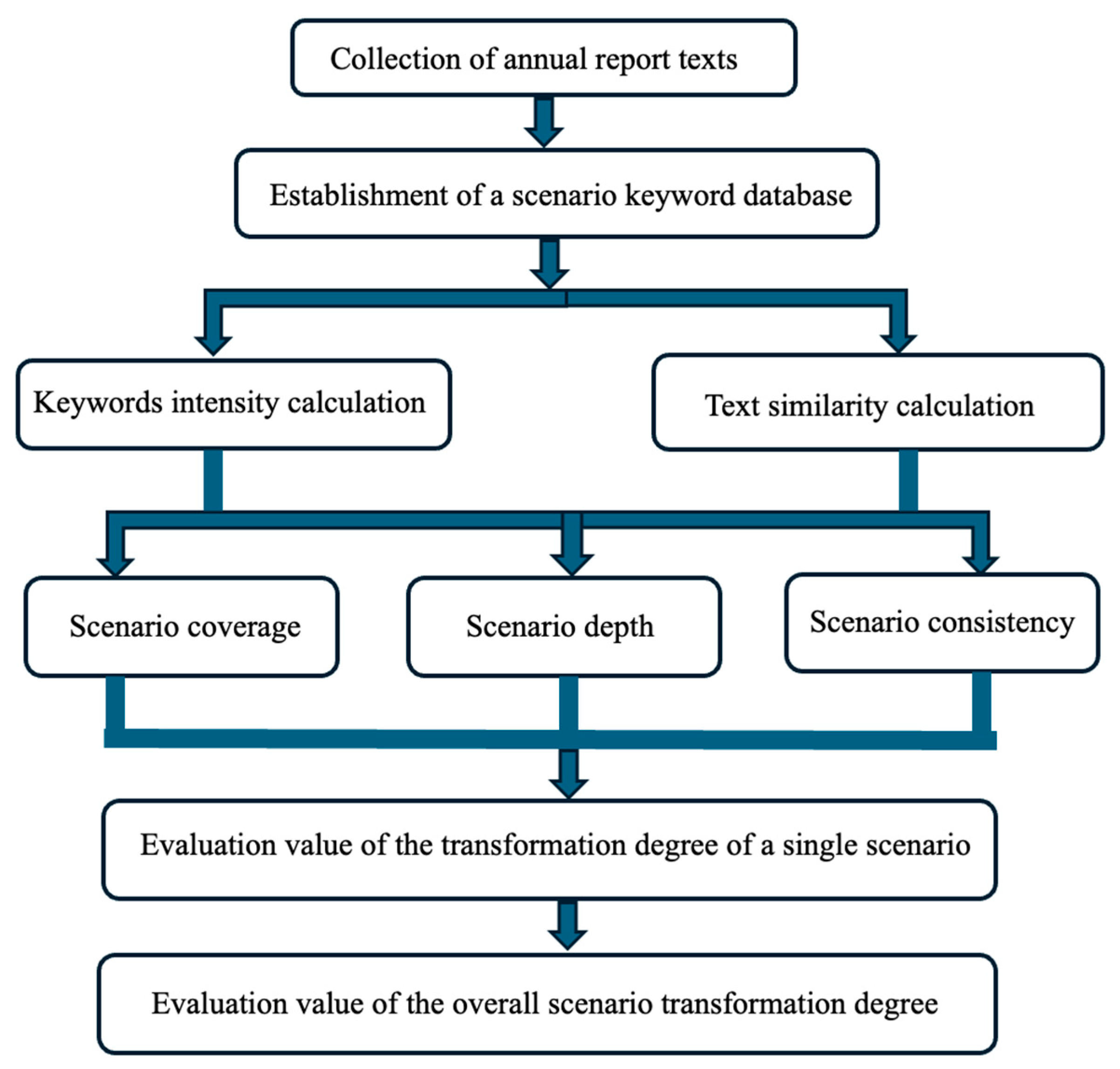 | Scenario Depth | Σ(Weights of different types of keywords × Frequencies of different types of keywords)/(Weight of the core keywords × keyword frequency) × 100% | Equation (A3) in Appendix B |