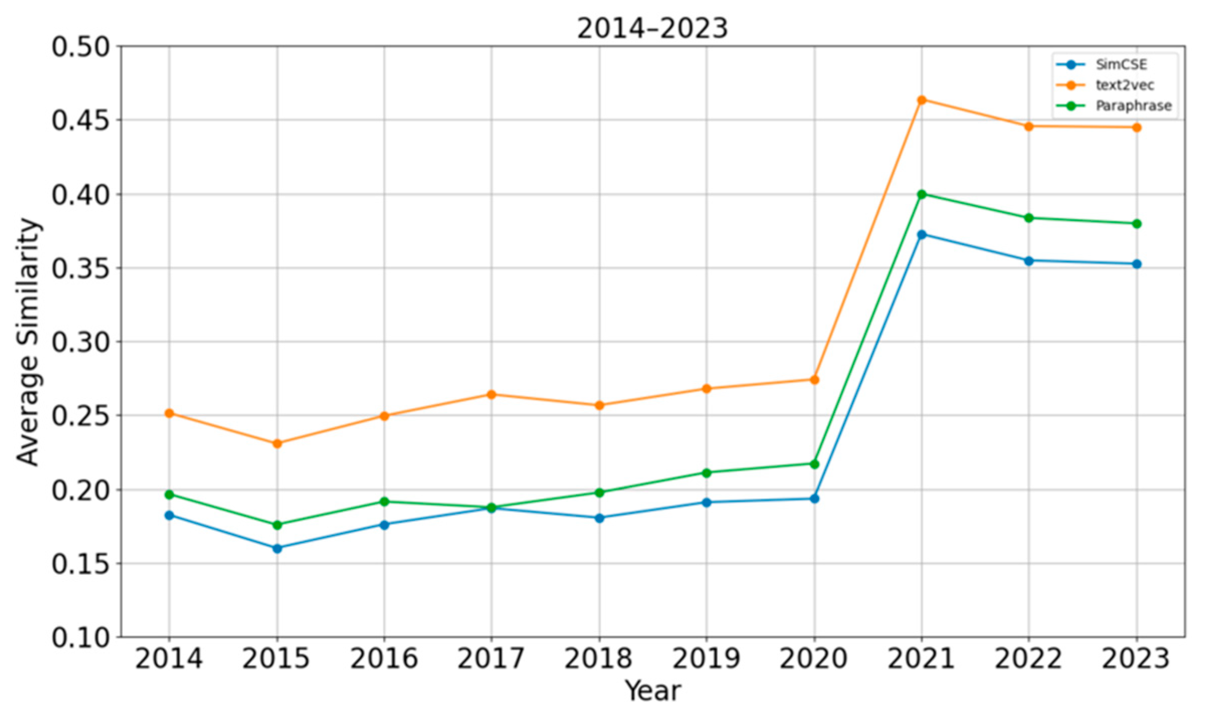 | Paraphrase | 0.1966 | 0.1759 | 0.1915 | 0.1877 | 0.1977 | 0.2113 | 0.2173 | 0.3999 | 0.3836 | 0.3799 |