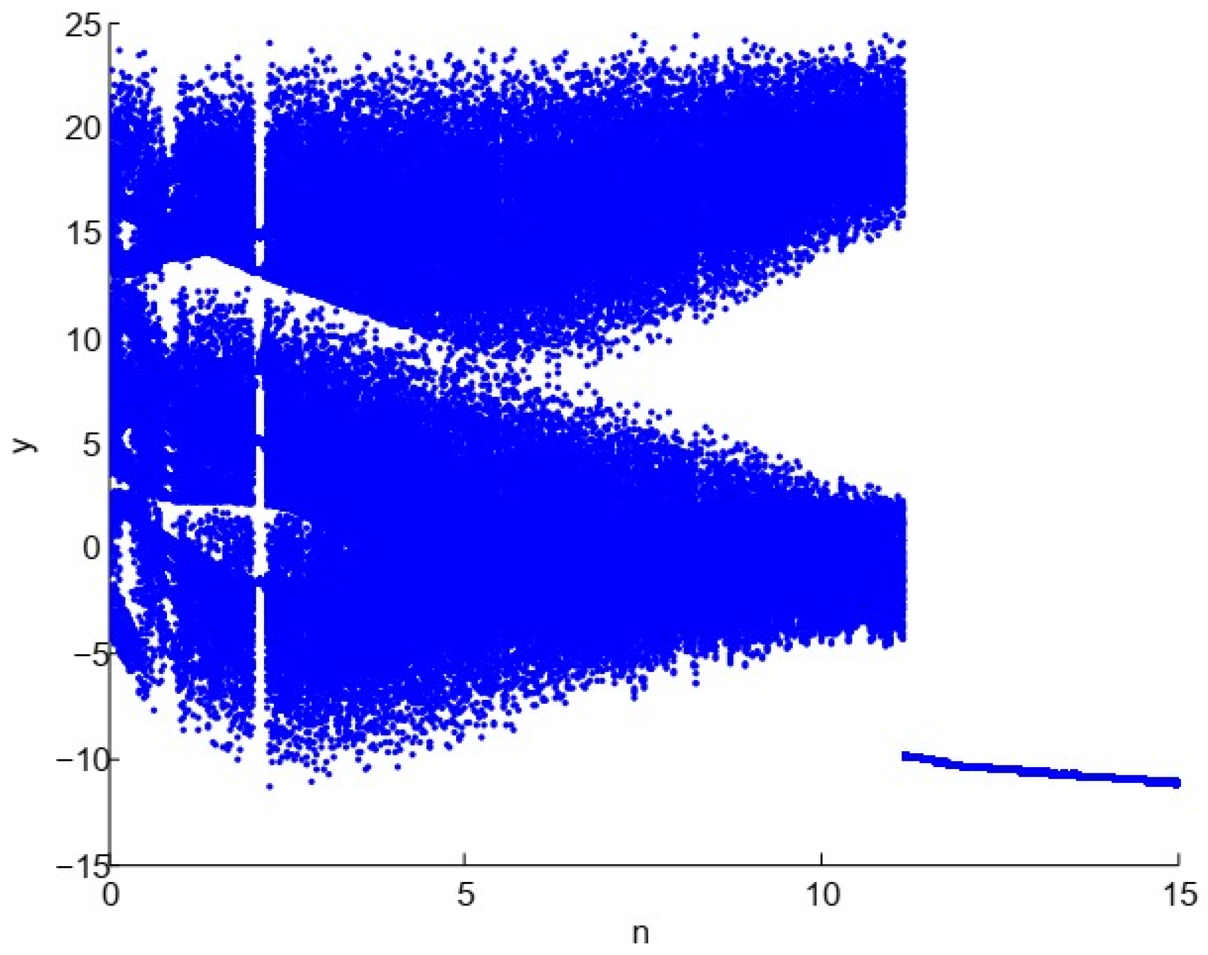 - Rössler, O.E. An Equation for Continuous Chaos. Phys. Lett. A 1976, 57, 397–398. [Google Scholar] [CrossRef]