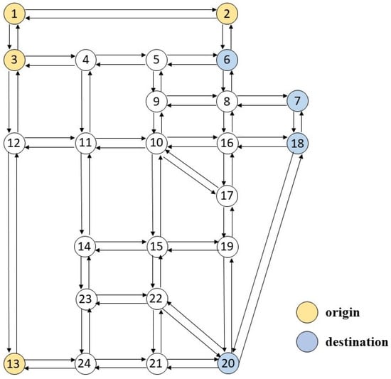 Numerical experiments were conducted on the Sioux Falls network, as shown in