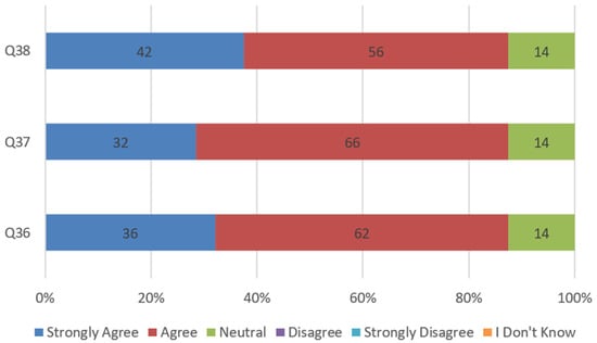 Questions 36 to 38 focused on improving awareness, understanding, and exposure of MSc students to Construction 4.0. Students were given five choices from strongly agree to strongly disagree. The questions posed and the results obtained can be seen in Section 4.6.