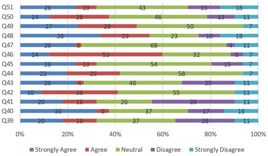 Questions 39 to 52 focused on the status and future role of Education 4.0 for MSc students. Students were given five choices from strongly agree to strongly disagree. The questions posed and the results obtained can be seen in Section 4.7.