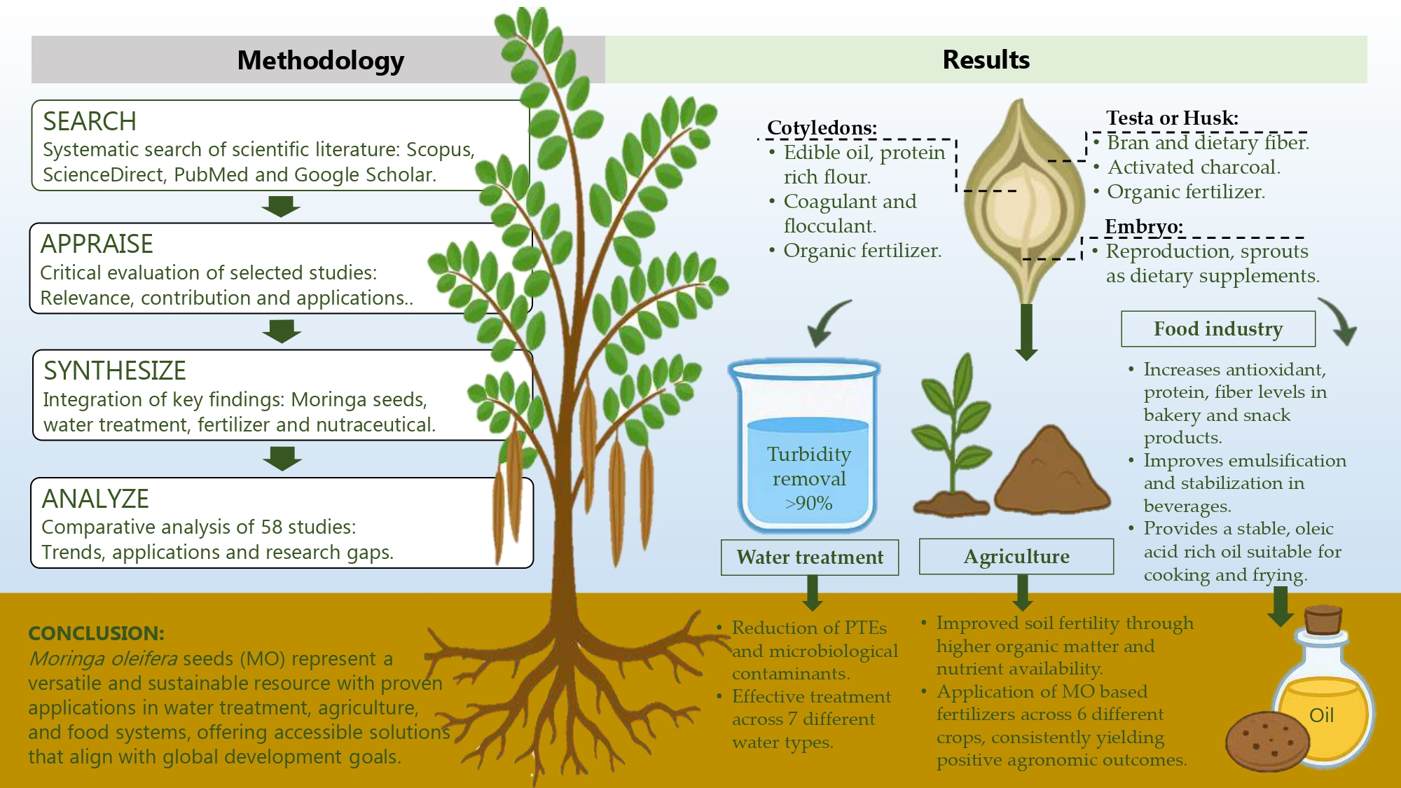 Chicago/Turabian StyleMoreno, Diana J., Consuelo C. Romero, and Daniel F. Lovera. 2026. "Applications and Uses of Moringa Oleifera Seeds for Water Treatment, Agricultural Fertilization, and Nutraceuticals" Sustainability 18, no. 1: 3. https://doi.org/10.3390/su18010003