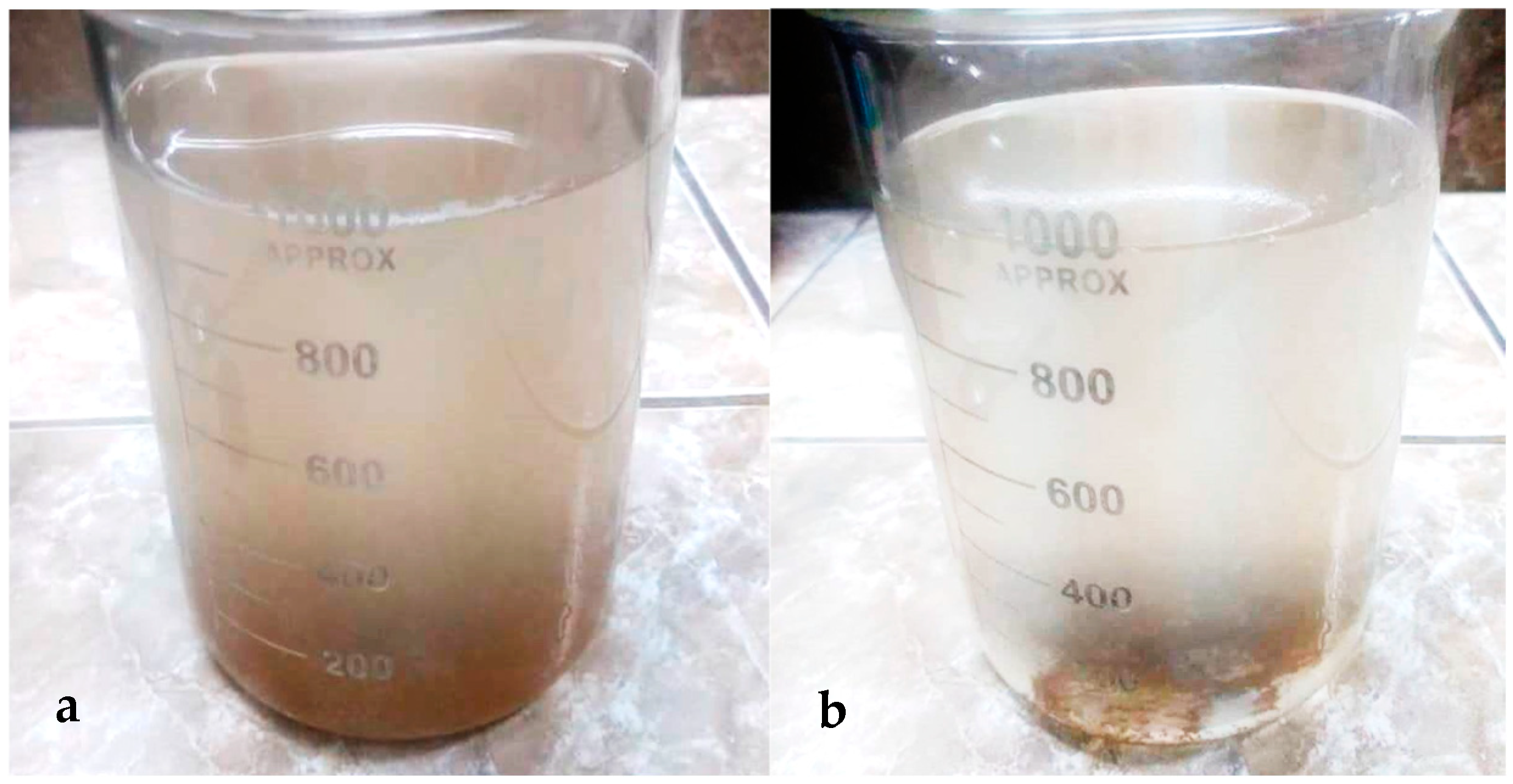 - Cobos, A.G.Z.; Gutiérrez, J.; Caballero, P. Use of Moringa Oleifera as a Natural Coagulant in the Reduction of Water Turbidity in Mining Activities. Water 2024, 16, 2315. [Google Scholar] [CrossRef]