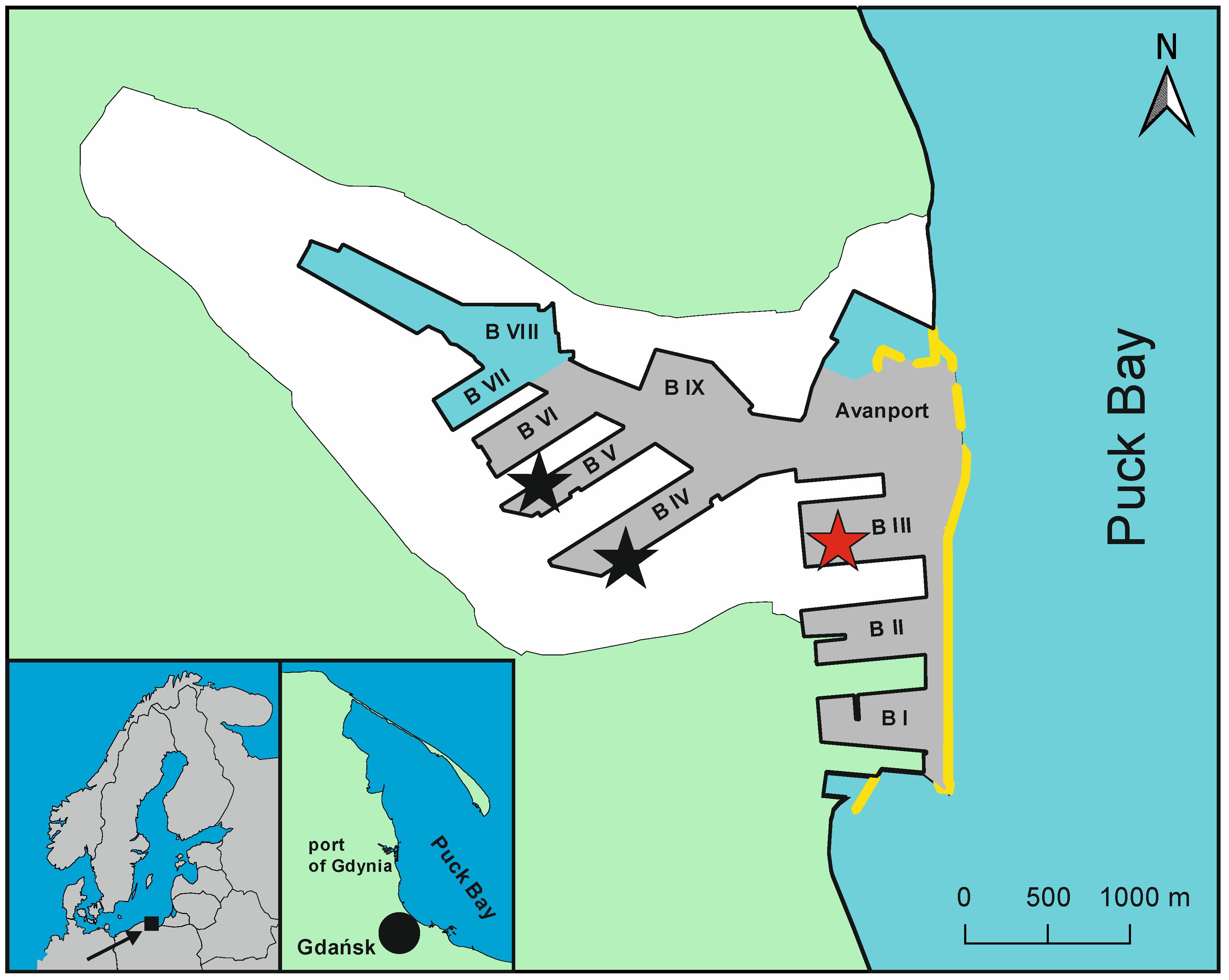 - Żukowska, S.; Palmowski, T.; Połom, M. Spatial development of the seaport on the example of Gdynia. Pr. Kom. Geogr. Komun. PTG 2021, 24, 94–105, (In Polish with English summary). [Google Scholar] [CrossRef]