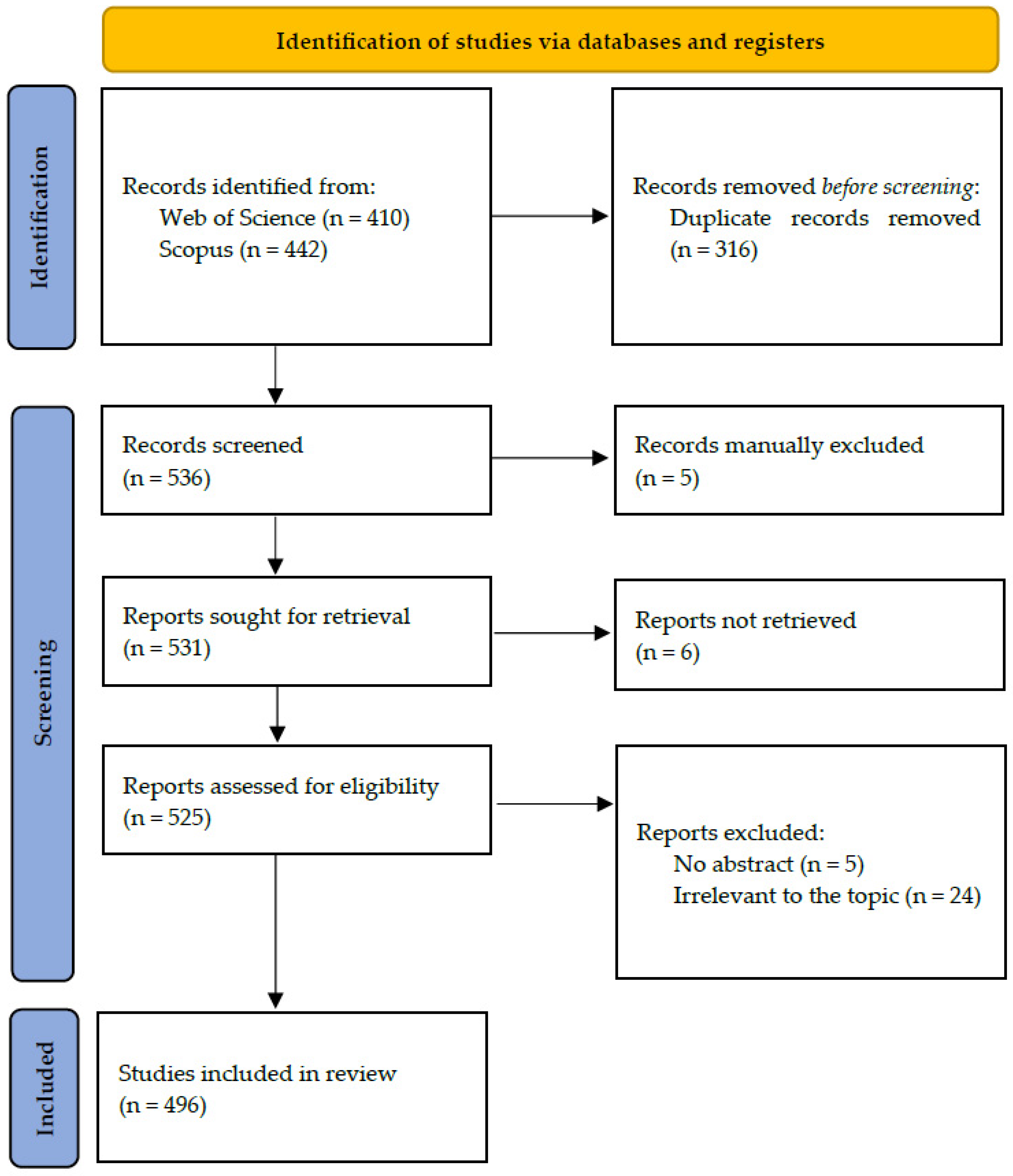 - Manual screening of remaining records by title, first author, publication year, and journal to resolve missing or inconsistent DOI entries.