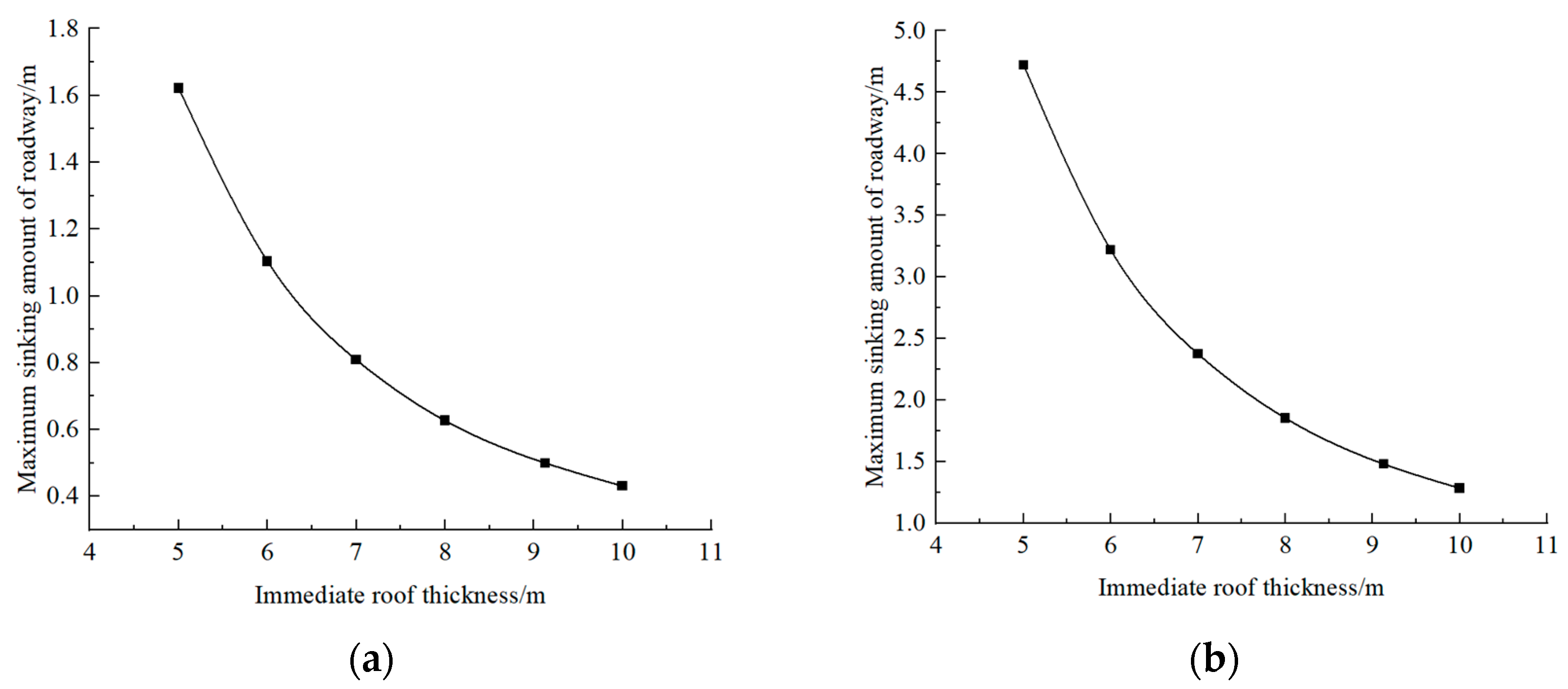 - Chai, Y.; Wang, M.; Meng, L.; Wang, C.; Liang, Z.; Yang, Y.; Liu, J. Influence of Roof Cutting Depth on Stability of Gob Side Entry in Thick Coal Seams with a Bulky Limestone Roof. Sci. Rep. 2025, 15, 31267. [Google Scholar] [CrossRef]
