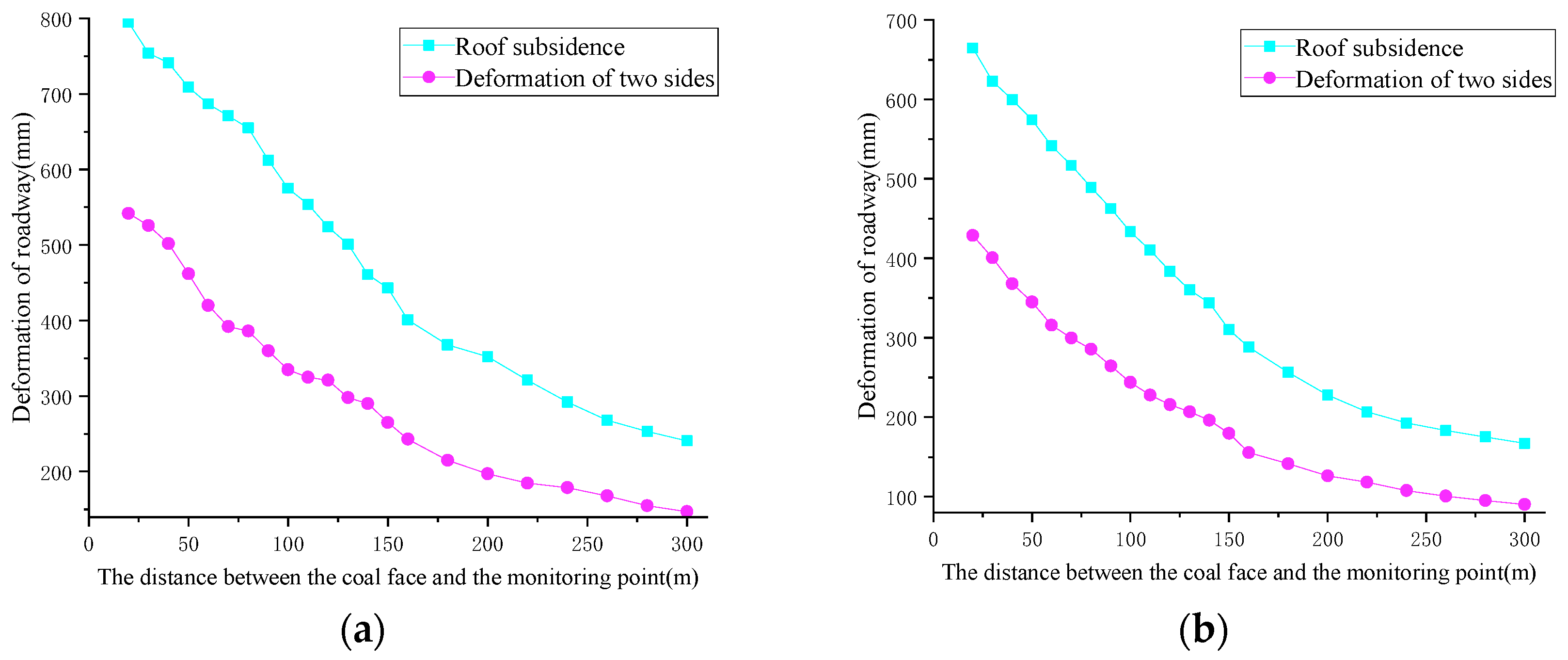 - Li, W.; Guo, Y.; Liu, X.; Du, F.; Li, G.; Ma, Q. Failure Mechanisms and Reinforcement Support of Soft Rock Roadway in Deep Extra-Thick Coal Seam: A Case Study. Eng. Fail. Anal. 2024, 165, 108745. [Google Scholar] [CrossRef]
