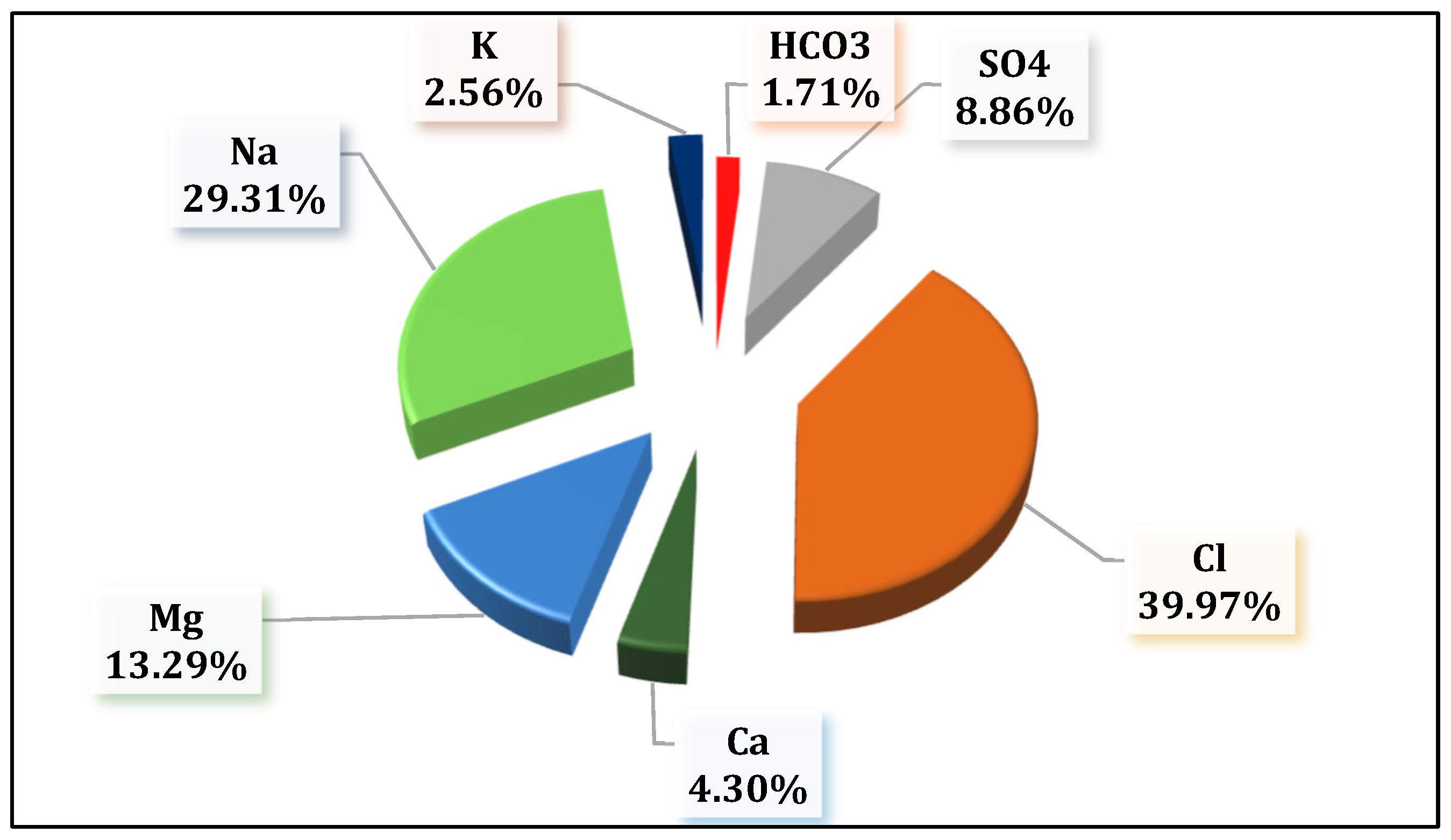 - Sunkari, E.D.; Abu, M.; Zango, M.S. Geochemical evolution and tracing of groundwater salinization using different ionic ratios, multivariate statistical and geochemical modelling approaches in a typical semi-arid basin. J. Contam. Hydrol. 2021, 236, 103742. [Google Scholar] [CrossRef]
