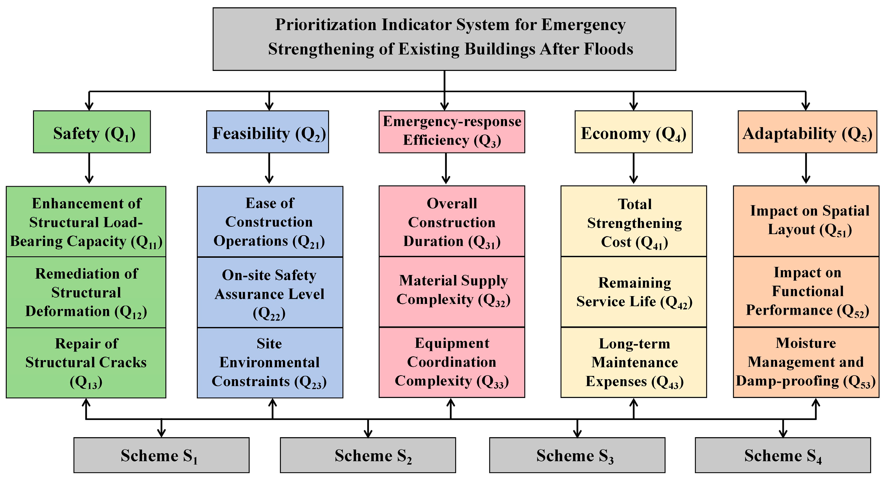 Chicago/Turabian StyleLi, Wenlong, Qiuyu Li, Yayu Shao, Qin Li, Lixin Jia, and Yijun Liu. 2026. "Prioritization of Emergency Strengthening Schemes for Existing Buildings After Floods Based on Prospect Theory" Sustainability 18, no. 1: 363. https://doi.org/10.3390/su18010363