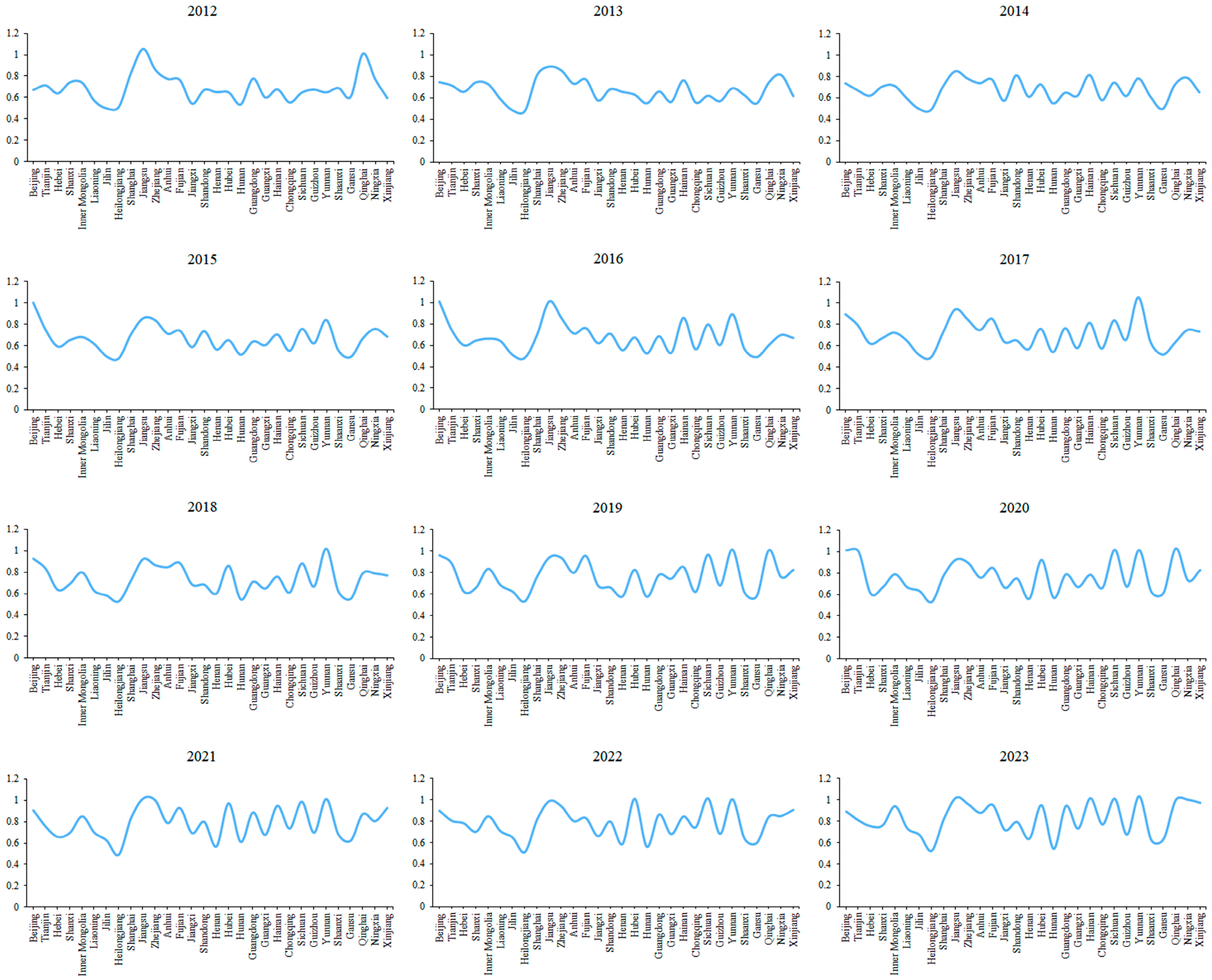 | Xinjiang | 1.139 | 1.056 | 1.126 | 0.943 | 1.046 | 1.018 | 1.060 | 1.100 | 1.048 | 1.002 | 0.956 |
