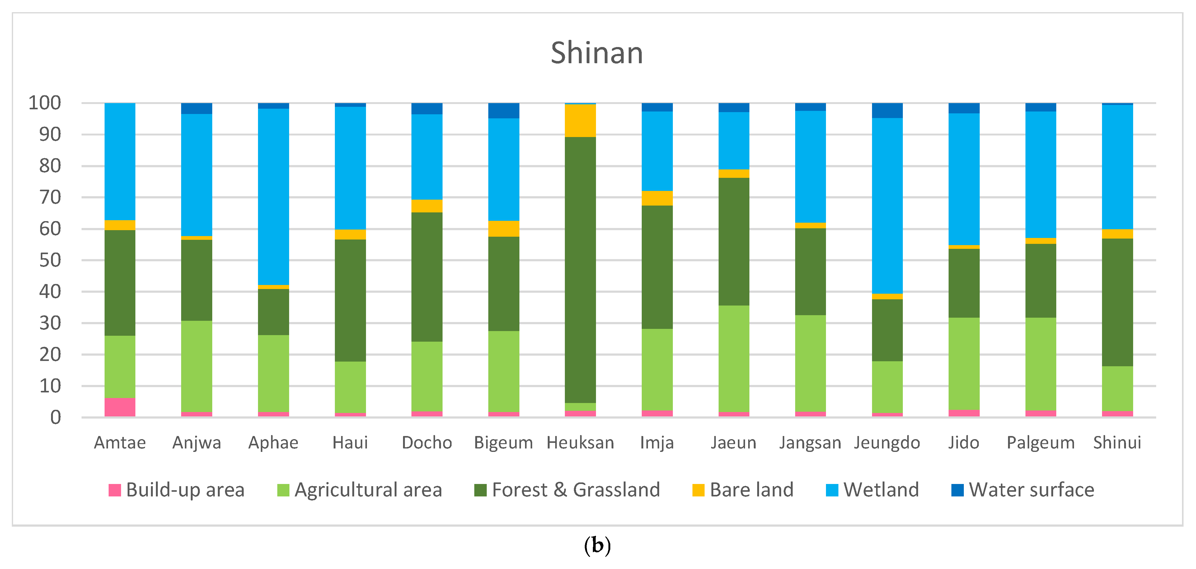 - Kim, J.-E. Land use patterns and landscape structures on the islands in Jeonnam Province’s Shinan County occasioned by the construction of mainland bridges. J. Mar. Isl. Cult. 2016, 5, 53–59. [Google Scholar] [CrossRef]