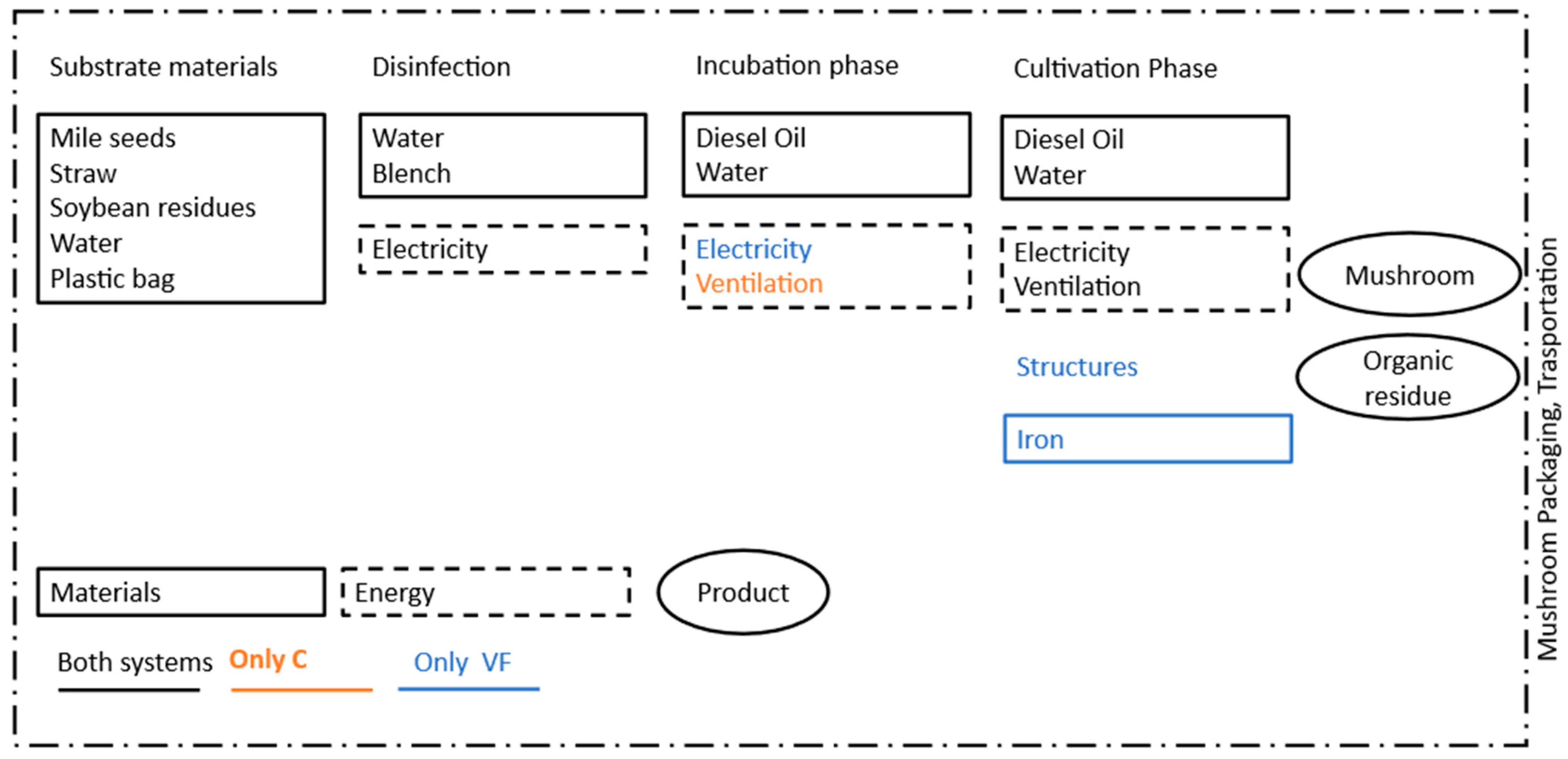 - Ueawiwatsakul, S.; Mungcharoen, T.; Tongpool, R. Life Cycle Assessment of Sajor-Caju Mushroom (Pleurotus sajor-caju) from Different Sizes of Farms in Thailand. Int. J. Environ. Sci. Dev. 2014, 5, 435–439. [Google Scholar] [CrossRef]