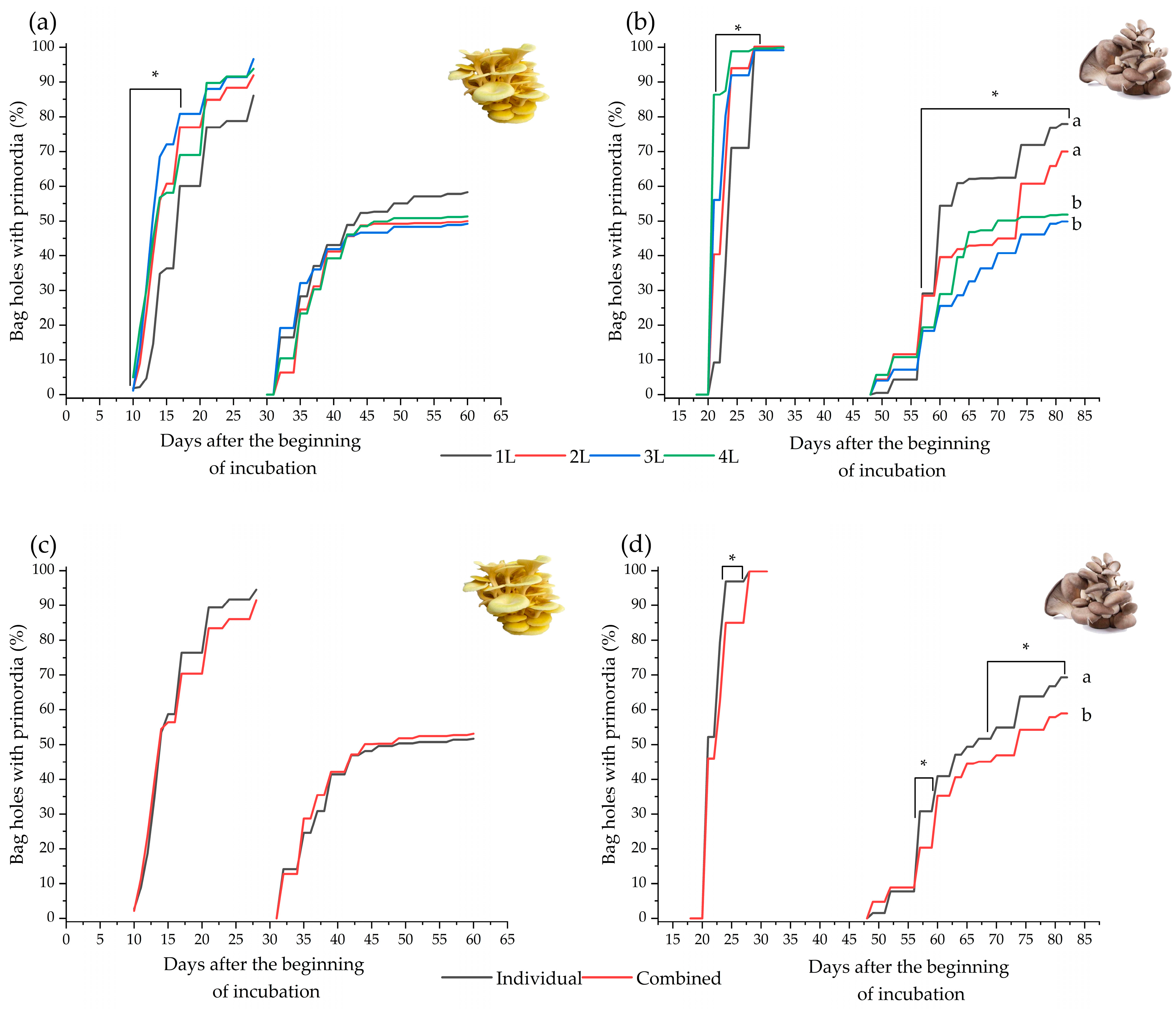 3.1.1. Primordia Appearance and Yield