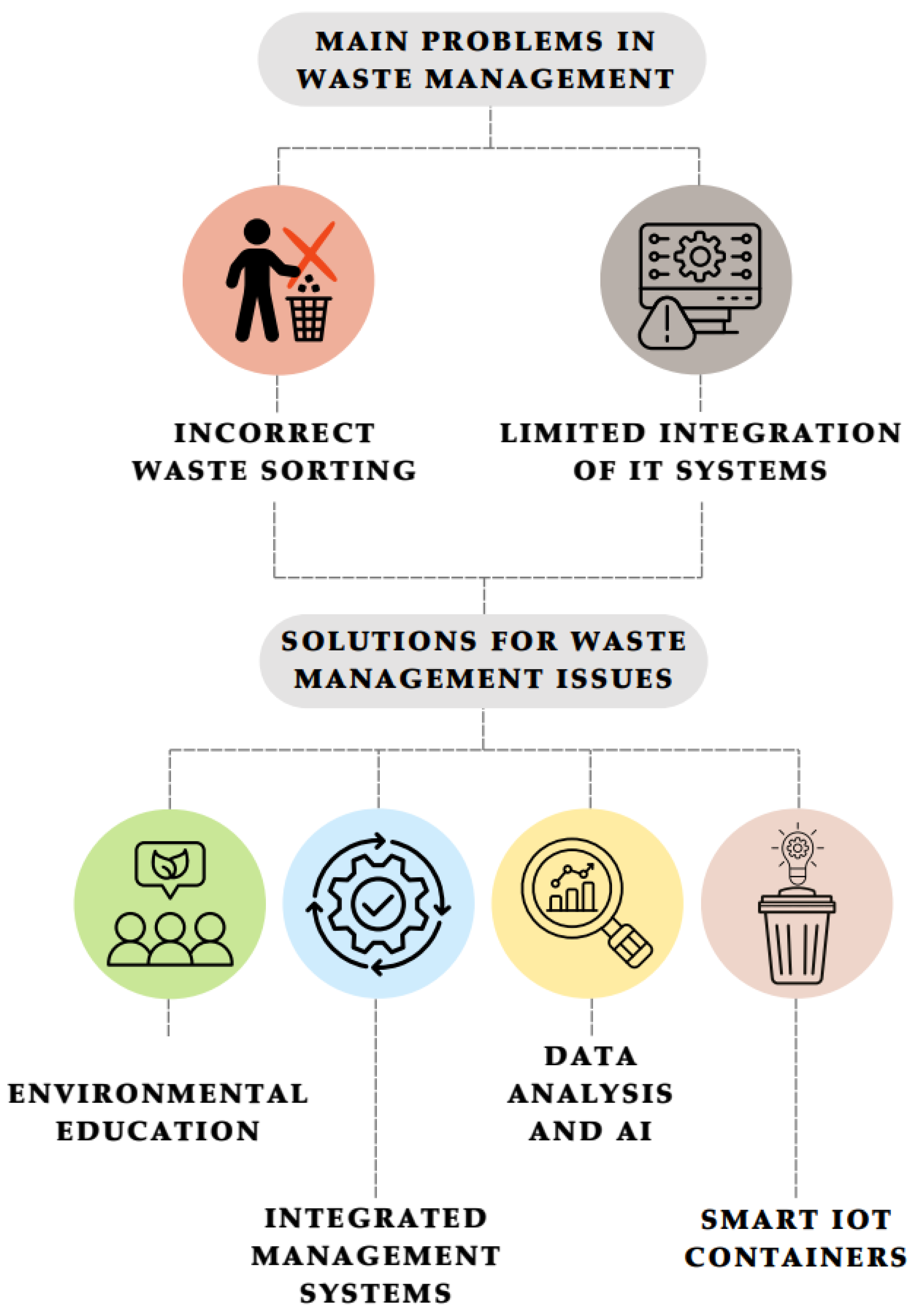 | Implementation of data-driven solutions | Use of real-time data for strategic and operational decision-making | Big data analytics, AI decision systems | Enhanced efficiency and sustainability of waste management systems | [118] |