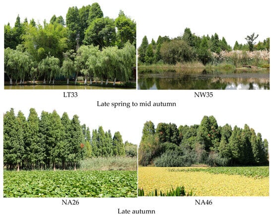 Current research on plant coloration primarily focuses on urban environments, such as urban parks [2,3,4,5], university green spaces and forest parks [6,7], whereas studies on plant coloration in wetland parks remain relatively scarce. Internationally, European wetland landscapes have achieved notable progress in color-related monitoring, particularly in the Danube Delta in Romania and Vilmose Fen in Denmark [8,9], where hyperspectral imaging is used to quantify seasonal chlorophyll and carotenoid dynamics for biodiversity and habitat assessment. However, these studies emphasize ecological functions and vegetation health, rather than directly linking plant color patterns to human aesthetic perception. In addition, most existing studies concentrate on seasonal color landscapes in temperate urban green spaces [10,11], with limited attention to the year-round dynamic coloration of subtropical wetlands.