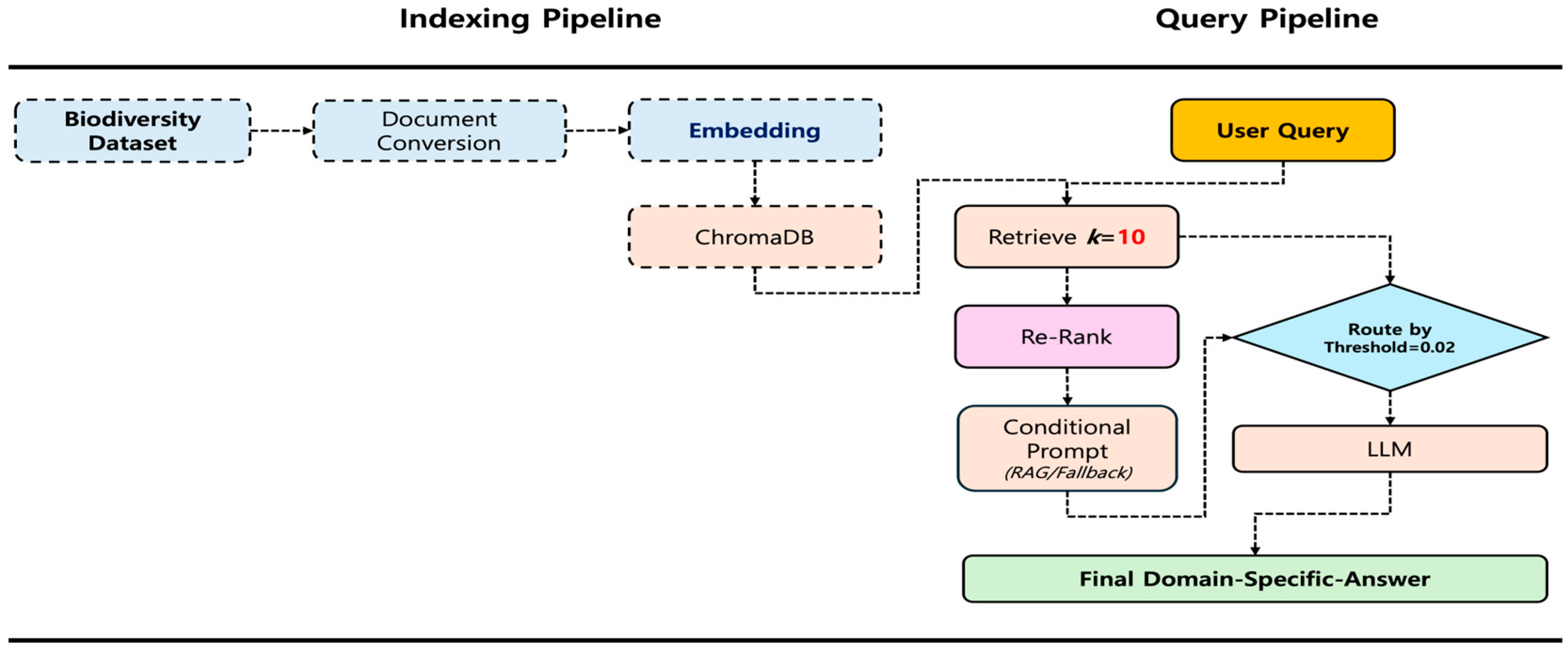 - Sustainable-Oriented System Blueprint: We present a high-fidelity, reproducible RAG framework designed to support environmental education and evidence-based conservation decision-making by reducing barriers to accessing expert-verified biodiversity data.