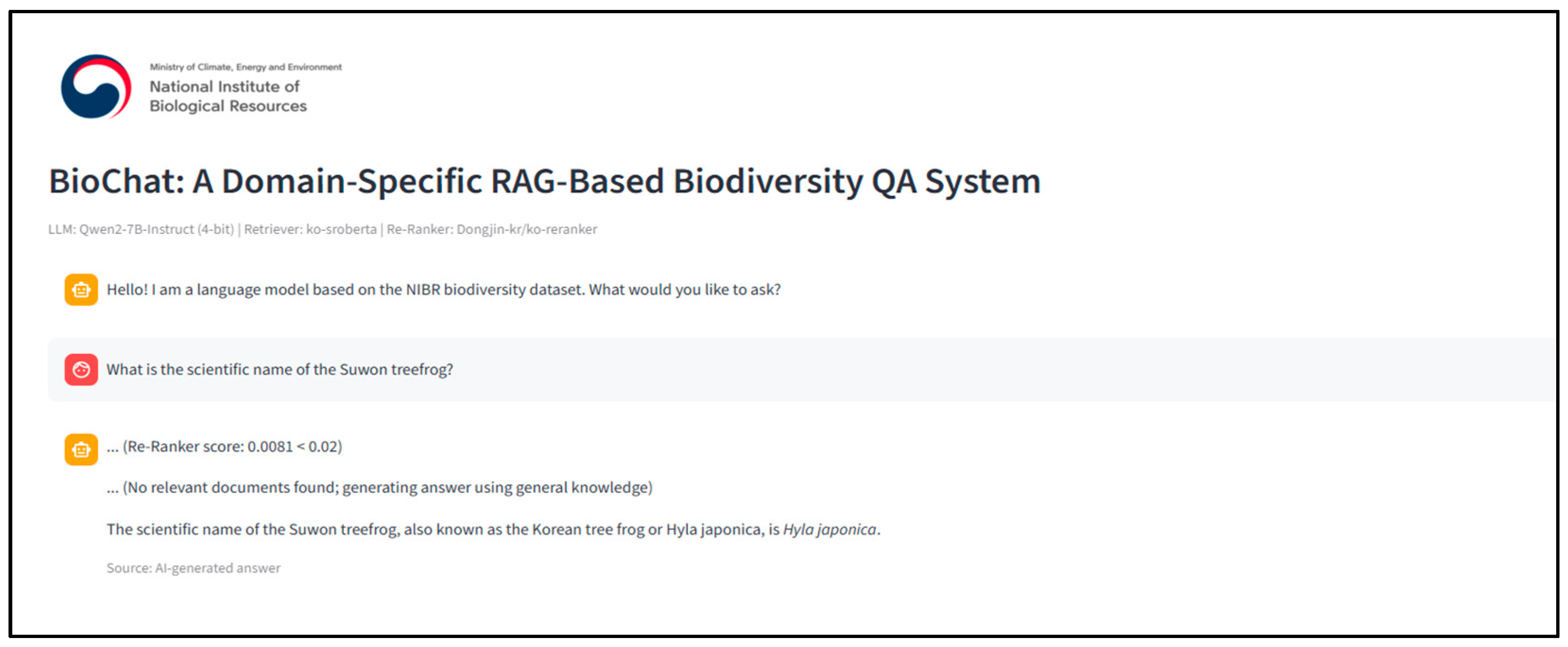 - System: “You are a biodiversity expert AI assistant using verified NIBR data.”