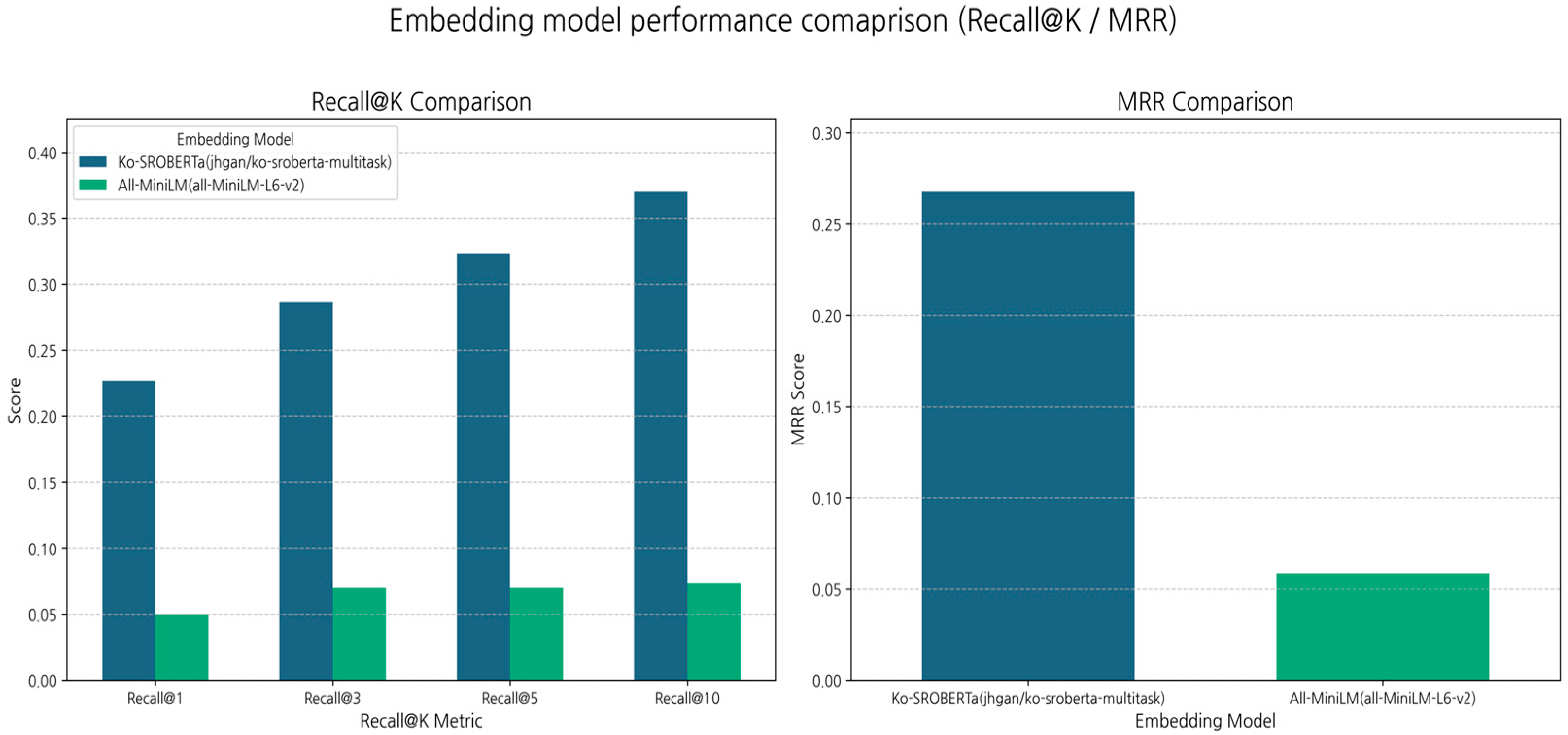 | Metric | Jhgan/Ko-Sroberta-Multitask | Sentence-Transformers/All-MiniLM-L6-v2 |