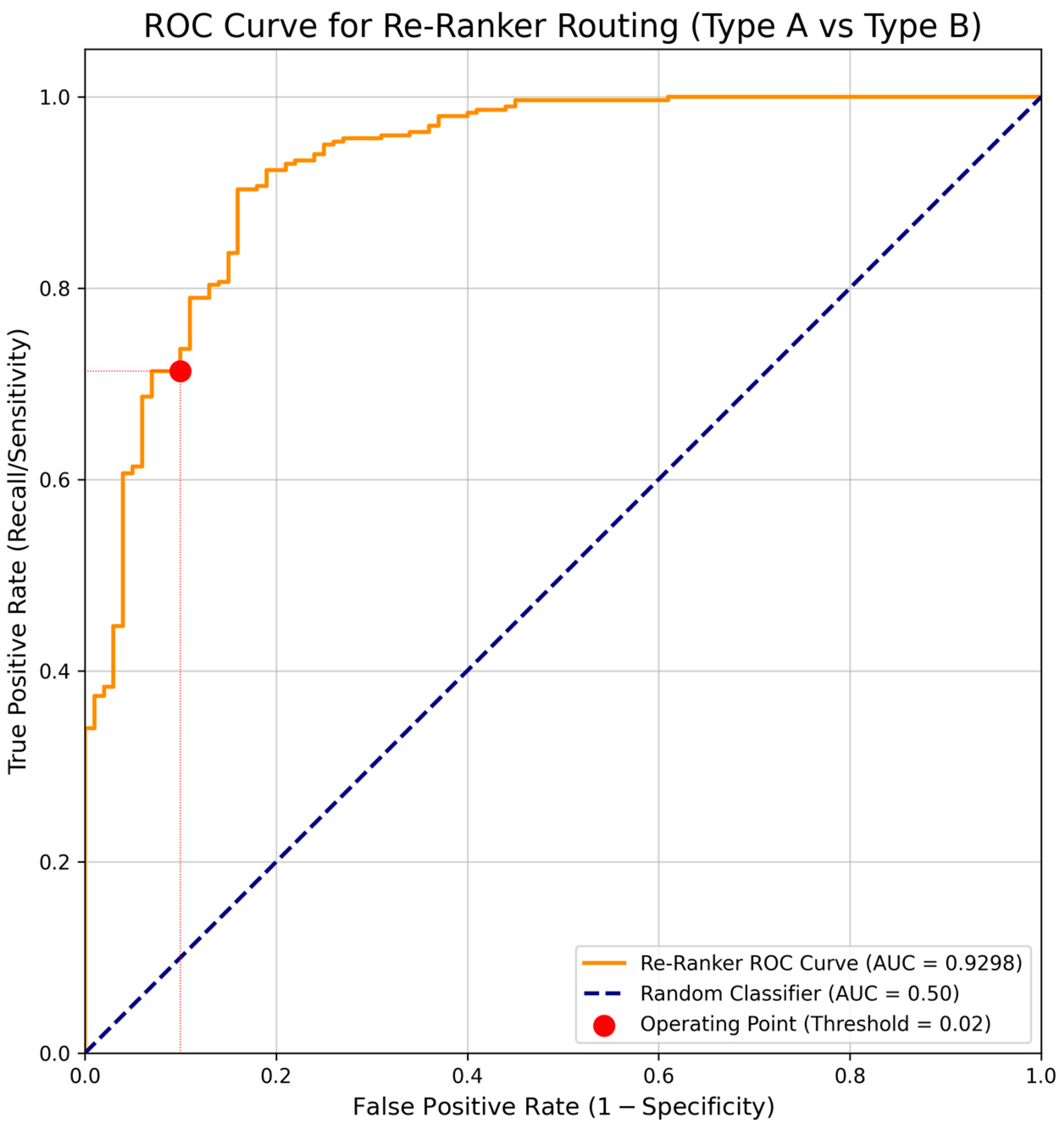 - Empirical Routing Threshold Optimization: We propose a reproducible methodology for determining an optimal routing threshold (τ = 0.02) through statistical analysis of re-ranker score distributions, enabling precision-oriented routing that effectively filters irrelevant or noisy queries.