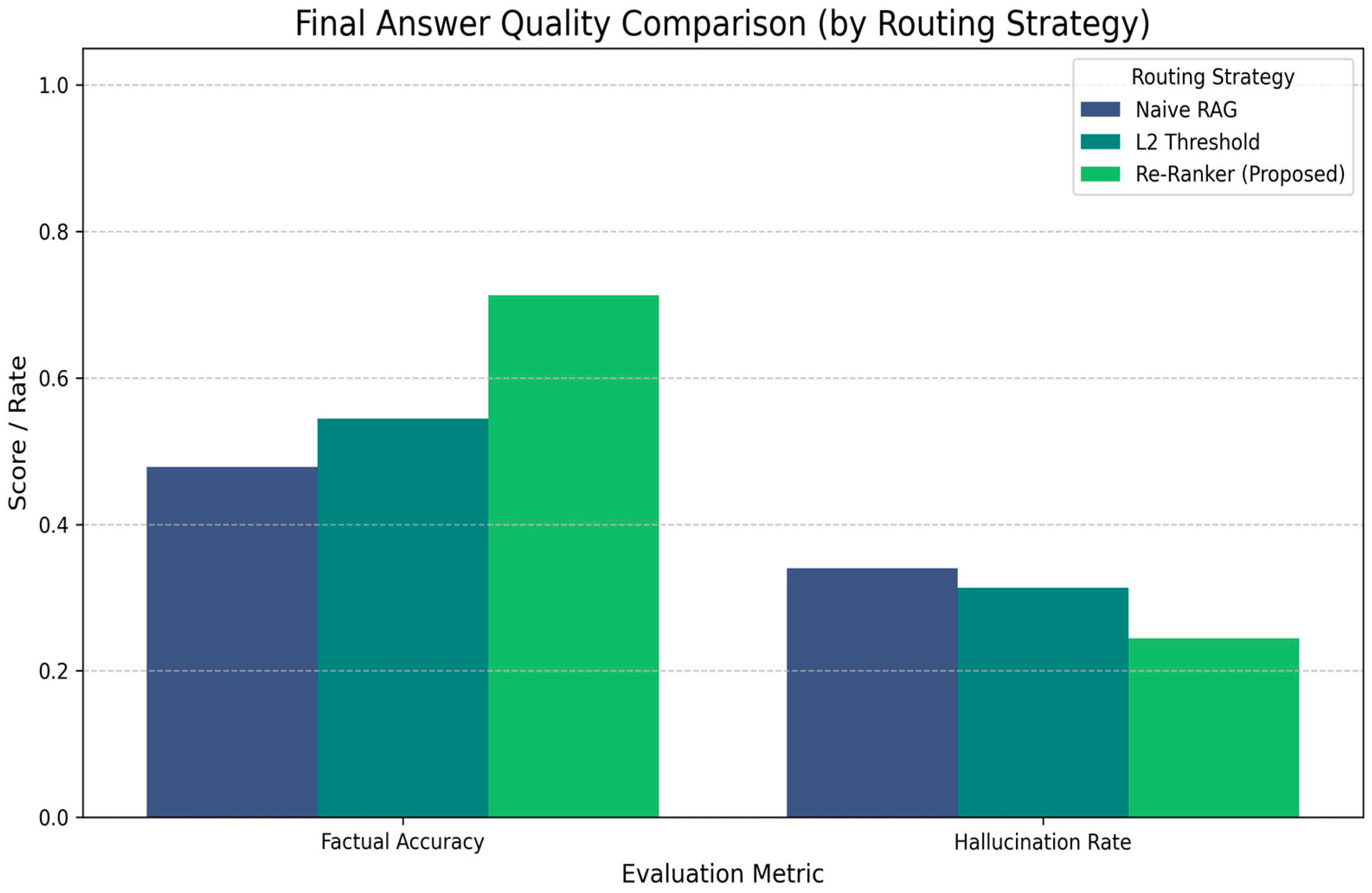 | (RQ2) | Routing strategy | How effective is the reranker-based routing strategy in mitigating hallucinations? |