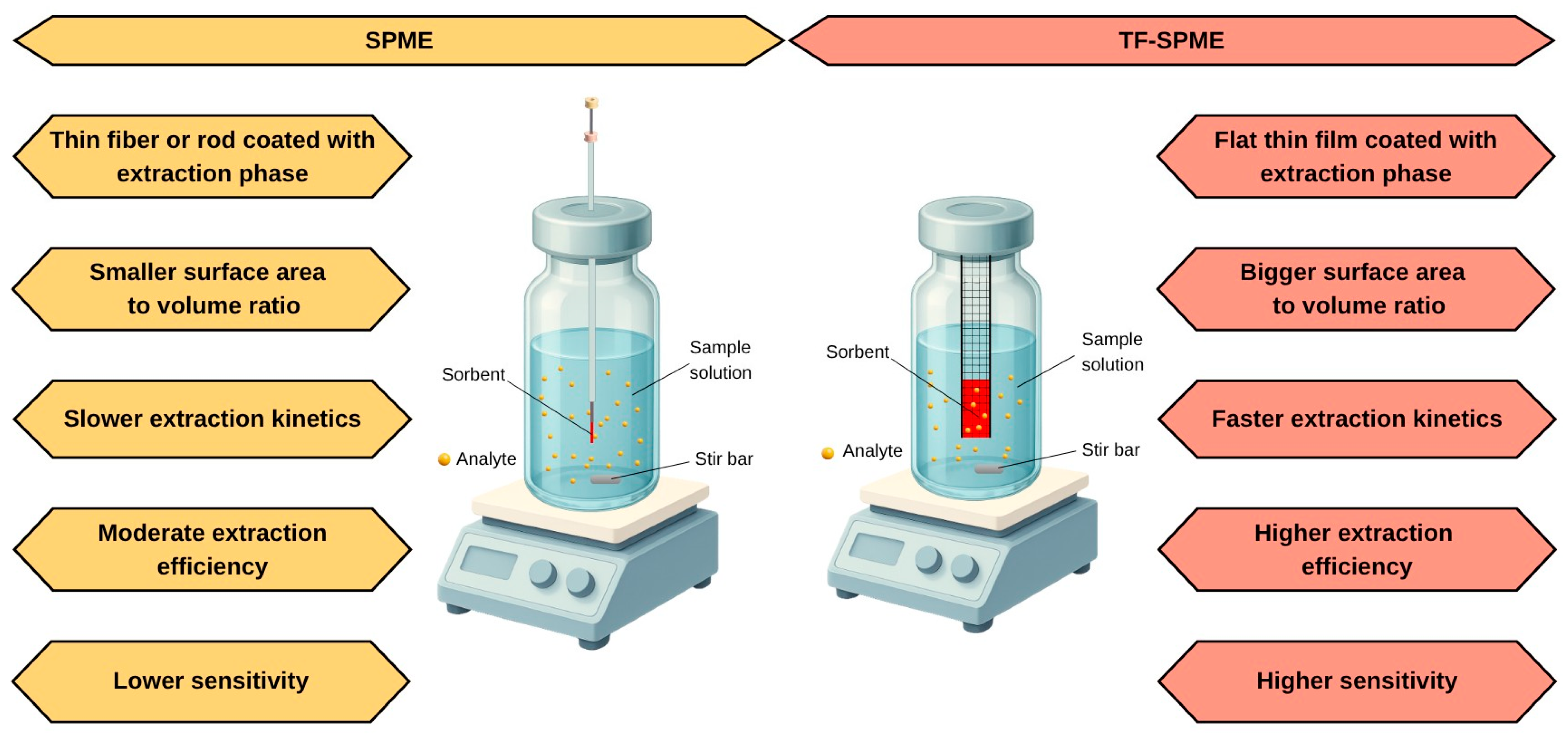 - techniques based on a support coated sorbent: hollow fiber solid-phase microextraction (HF-SPME), stir bar sorptive extraction (SBSE), thin film solid-phase microextraction (TF-SPME), membrane solid-phase microextraction (M-SPME),